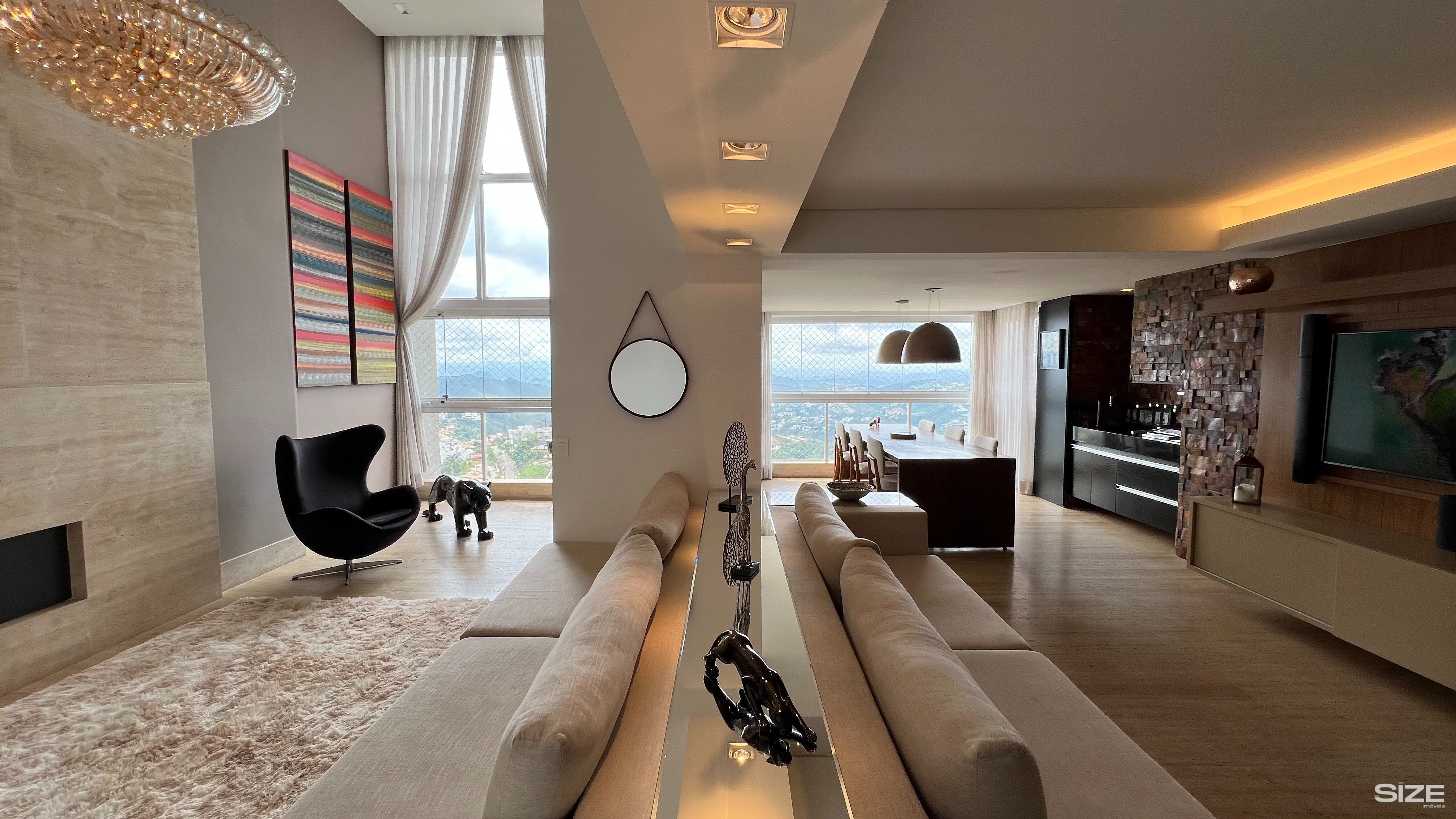 Apartamento de alto padrão, finamente mobiliado, situado na valorizada Vila da Serra, região reconhecida pela infraestrutura completa e qualidade de vida. Com 220 m², o imóvel apresenta excelente distribuição dos ambientes, proporcionando conforto e funcionalidade. A sala ampla, com piso em travertino, lareira e pé-direito duplo, destaca-se pela imponência e pela luminosidade natural, além da vista definitiva que valoriza ainda mais o espaço. A varanda gourmet com churrasqueira integra-se harmoniosamente à área social, criando um ambiente perfeito para receber convidados com elegância. Originalmente com quatro suítes, o apartamento foi adaptado para três suítes espaçosas, ampliando a área social com uma confortável sala de jantar e um escritório reservado. Conta também com lavabo. Dispõe de quatro vagas de garagem e box de apoio. O condomínio oferece lazer completo em estilo resort, com estrutura diferenciada e alto padrão de segurança, ideal para quem busca exclusividade, conforto e sofisticação.