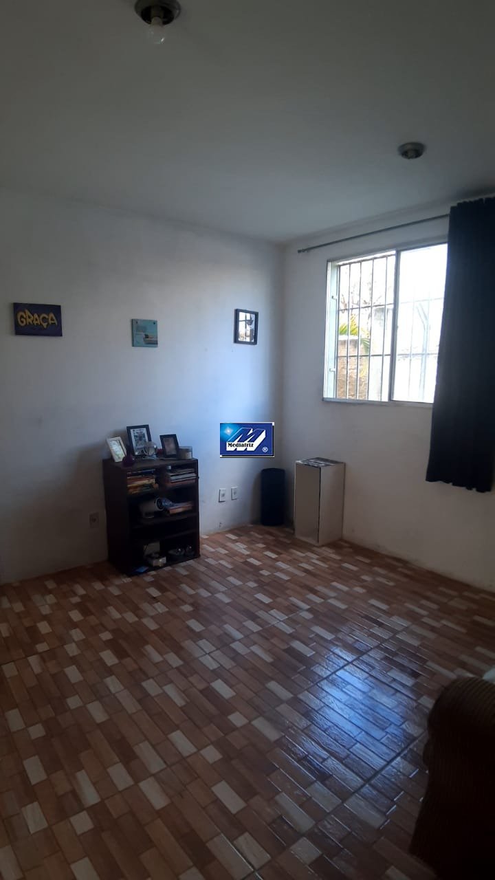 Apartamento de 02 quartos sem armários, sala, cozinha com armário, área de serviço e 01 banheiro com blindex. Todos os cômodos possuem cerâmica. O imóvel possui estacionamento.