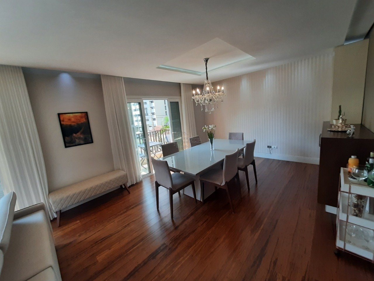 Belíssimo apartamento à venda no centro da cidade com 177m² de área privativa e 210m² de área total. O apartamento conta com ampla sala de dois ambientes (estar e jantar), cozinha, escritório, 3 amplos quartos sendo 1 suíte, área de serviço, duas áreas de armazenamento, lavabo, banheiro social e banheiro da suíte. Fica localizado no coração do centro, próximo a várias comodidades. Todos os cômodos são repletos de armários planejados. As portas das sacadas possuem tratamento acústico, possibilitando conforto sonoro na sala, escritório e nos 3 quartos. O teto conta com gesso em toda a área do apartamento, com sancas de iluminação LED. A iluminação é de alta qualidade, com belos lustres na sala. Os vidros são de alta qualidade e o apartamento é revestido de piso de madeira maciça importada, criando um ambiente aconchegante. A sala possui um painel planejado com iluminação LED em várias cores. O apartamento foi completamente reformado recentemente, incluindo piso, portas, janelas, sacadas, encanamento e pintura. O apartamento conta com ar-condicionado, proporcionando conforto durante todo o ano. O hall de entrada tem um acabamento com pedras importadas. Os banheiros, cozinha e área de serviço têm piso de porcelanato de alta qualidade. Há aquecimento a gás nos chuveiros e nas torneiras. O prédio conta com apenas 7 imóveis, sendo a cota condominial destinada aos custos gerais. O apartamento tem uma distribuição diferenciada de áreas privativas e comuns, garantindo espaço e conforto.