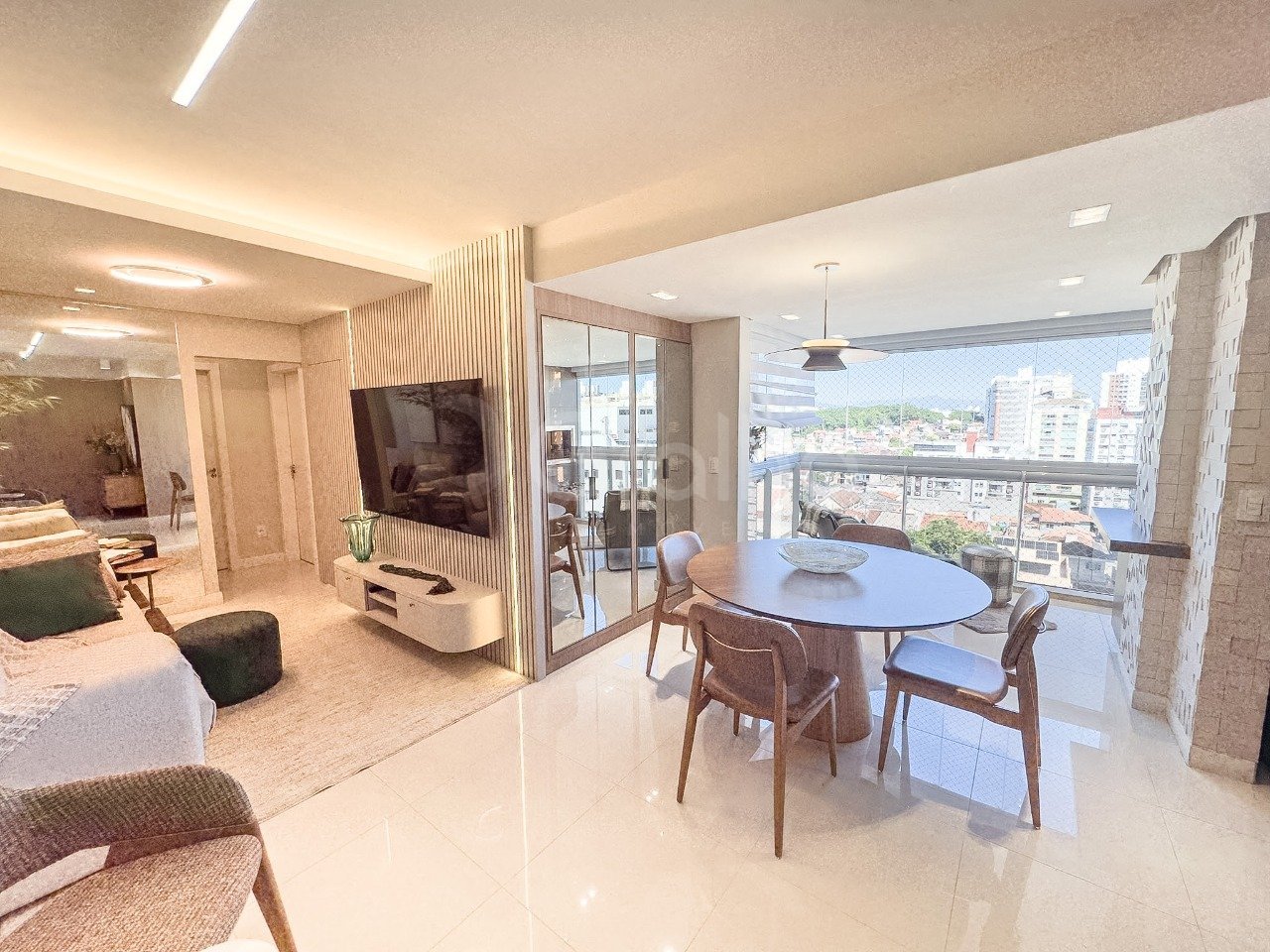 Apartamento de alto padrão no bairro Agronômica, com 90,53 m² de área privativa e vista para o mar. Trata-se de um imóvel diferenciado, com ambientes que oferecem vista privilegiada e localização estratégica, contando com mobília de alta qualidade e projetos arquitetônico e luminotécnico especiais. A sala ampla integra os ambientes de TV, estar e jantar com excelente bom gosto, conectando-se a uma sacada com churrasqueira e linda vista para o mar, ideal para momentos de lazer com família e amigos. A planta original de três dormitórios pode ser facilmente revertida, sendo que atualmente um dos dormitórios está transformado em closet. Os dois dormitórios atuais são mobiliados, possuem janelas grandes e excelente ventilação. O imóvel dispõe de uma suíte e banheiro social, ambos com box de vidro temperado, móveis e louças sanitárias de qualidade. A cozinha é funcional, equipada com armários e eletrodomésticos, e a área de serviço é separada, contando com móveis e máquina de lavar. A unidade possui uma vaga de garagem livre, coberta e fixa. A infraestrutura predial é completa e oferece elevadores, portaria 24 horas, hall decorado, salão de festas, salão de jogos, playground, academia e zeladoria, além de vagas para visitantes e piscinas adulto, infantil e aquecida.