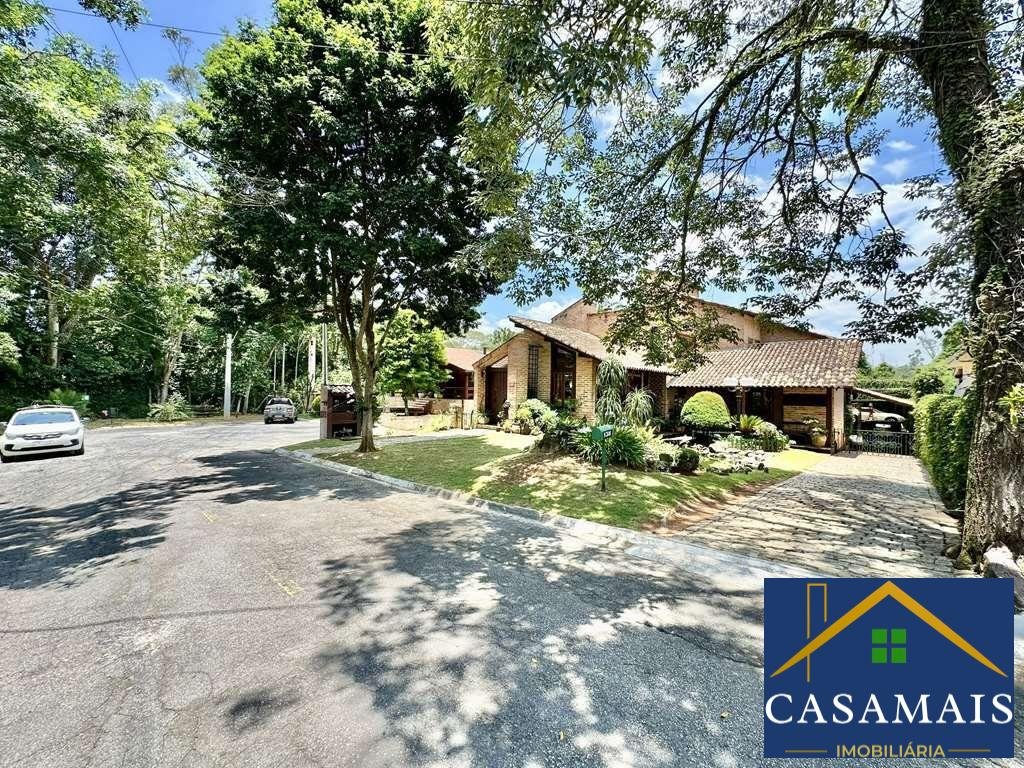 PORTEIRA FECHADA. SALÃO DE FESTAS GOURMET COMPLETO, MULTIUSO. Linda casa rústica integrada impecável, com tijolos aparentes e materiais de demolição. Casa de bom gosto com ótimo acabamento. Projeto diferenciado do Arquiteto. Ótima localização em final de rua tranquila, arborizada e sem saída. Jardim com paisagismo. Laguinho de carpas, com pedras e cascata. Ensolarada, bem arejada e iluminada. Imóvel repleto de armários. Portas e janelas de demolição em Pinho de Riga. Alguns vitrais. Pisos em pedra Goiás, tábuas largas, porcelanato, porcelanato rústico antiderrapante, mármore, cerâmica e paralelepípedo. Projeto de iluminação. 3 acessos: social, lazer e serviço. Hall de entrada social com 2 portas. Porta social dupla rústica imponente em madeira maciça trabalhada, com escotilha e ferragem exclusiva. Porta social represa de vidro, para controle de acesso dos PETS. Lavabo. Escada de alvenaria revestida em madeira com guarda corpo de ferro e corrimão de madeira. 4 suítes com armários e ar-condicionado. Piso superior. Mezanino Family room / home theater com guarda corpo em ferro e madeira. 3 suítes, uma delas com bancada de trabalho, sendo a master com pé direito alto, closet, terraço e mezanino multiuso. Banheiros com tampos em mármore, espelhos, gabinetes e box de vidro, sendo a master com 2 cubas, hidro com bay window e vitrais. Piso térreo. Roupeiro e depósito. Sala de TV / Escritório com varanda deck. 1 suíte de hóspedes com varanda deck. Living para 5 ambientes com aquário, integrados à cozinha. Estar, lareira em desnível, TV, jantar e bar. Adega com portão trabalhado em ferro forjado. Cozinha planejada repleta de armários com despensa, bancadas em granito, 2 pias inox, ilha com balcão, coifa inox e fogão 5