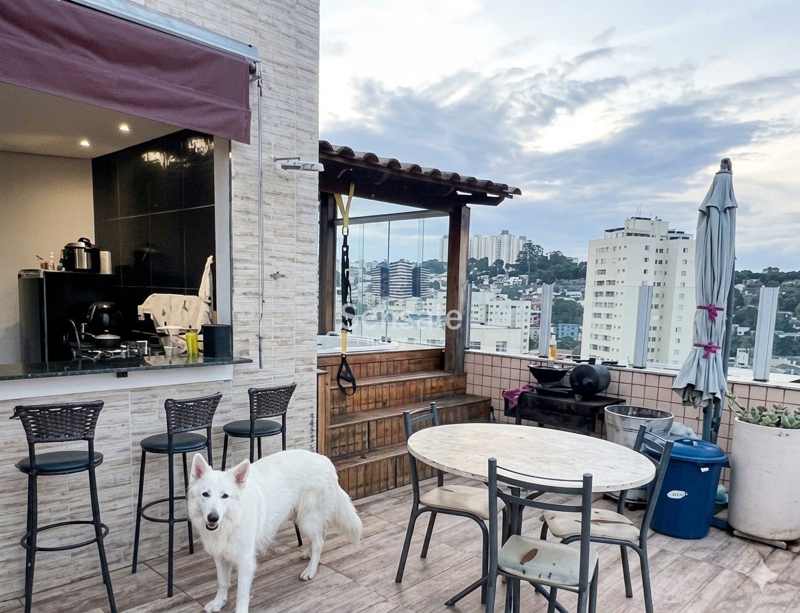 Cobertura espaçosa com aproximadamente 146m², distribuída em dois pavimentos, proporcionando conforto e funcionalidade. No primeiro pavimento, a sala ampla para três ambientes conta com piso em porcelanato. São dois quartos com armários planejados e piso em tábua corrida, além de dois banheiros com armários e box, sendo um deles suíte. A cozinha planejada possui bancadas em granito e piso em porcelanato. Área de serviço e DCE completam o ambiente. O segundo pavimento oferece um terceiro quarto com armários planejados, um banheiro social, além de um espaço de lazer exclusivo com varanda, jacuzzi com hidromassagem e área gourmet.