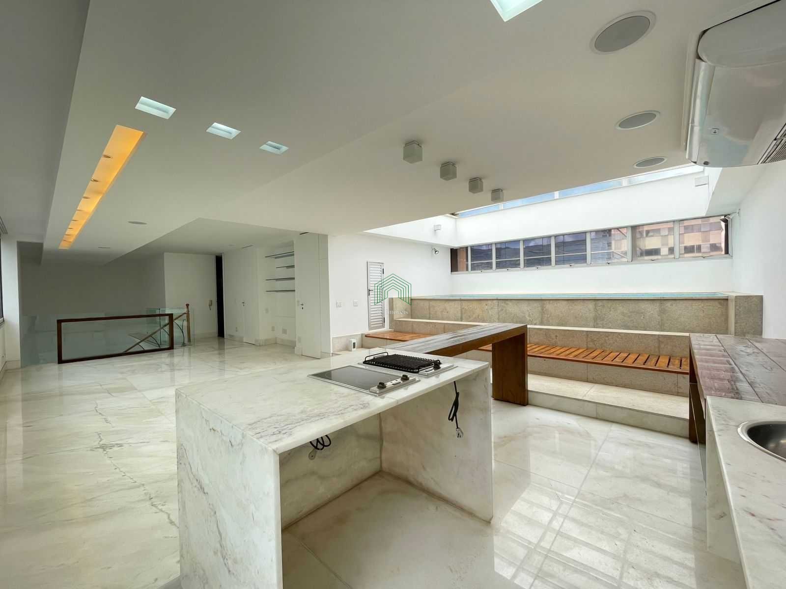 Cobertura de aproximadamente 575m² à venda - 4 quartos, 2 suítes, 3 vagas - Savassi Descubra o conforto e a sofisticação desta excelente cobertura no Savassi. Com aproximadamente 575m² de área total, este imóvel oferece espaços amplos, acabamentos de qualidade e uma planta inteligente: 1º Pavimento 1 sala ampla para dois ambientes com teto rebaixado em gesso, piso em mármore claro polido, além de rodapés em madeira. 3 quartos amplos, um com piso em tábua corrida e dois com piso em mármore, armários, sendo uma suíte com closet, revestida em mármore claro, box em vidro temperado, chuveiro com ducha metálica, iluminação embutida no teto, espelho e bidê. Cozinha ampla com bancadas e piso em granito preto, armários planejados, fogão com forno embutido, coifa em aço inox e cuba dupla em inox. Despensa. Banheiro social com piso em porcelanato marmorizado em tons claros, bancada em granito preto, box em blindex de vidro temperado, chuveiro com ducha e iluminação planejada. DCE. Área de serviço com piso em granito, tanques e armários planejados. 3 vagas de garagem cobertas e paralelas. 2º Pavimento 1 sala ampla toda em mármore, teto com rebaixamento em gesso e iluminação planejada, com ilha gourmet em mármore e ar refrigerado. Piscina com teto retrátil. 1 quarto amplo com piso em madeira envernizada, armários e iluminação planejada, teto com rebaixamento em gesso, sendo a suíte sofisticada, com revestimento em mármore, box em blindex com vidro transparente, banheira retangular embutida, bancada com pia em cuba de apoio e bidê. Lavabo com espelho e pia em cuba de apoio. Infraestrutura do condomínio Prédio de 13 andares, sendo 2 por andar. Portaria 24 horas. Salão de festas. Possui energia solar. Valores sujeitos a alteração sem aviso prévio.