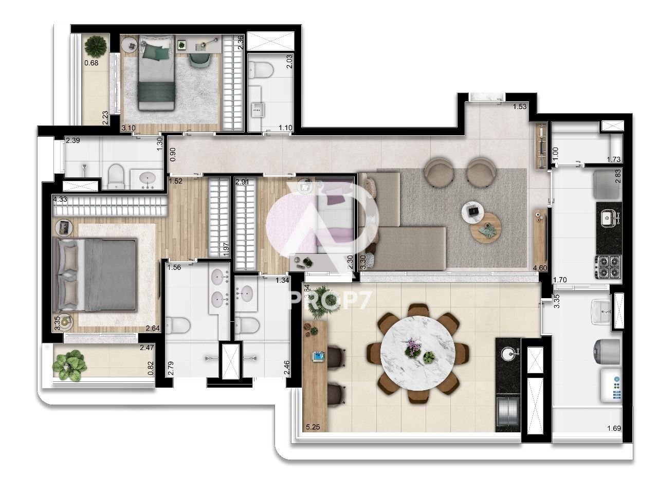 3 suítes