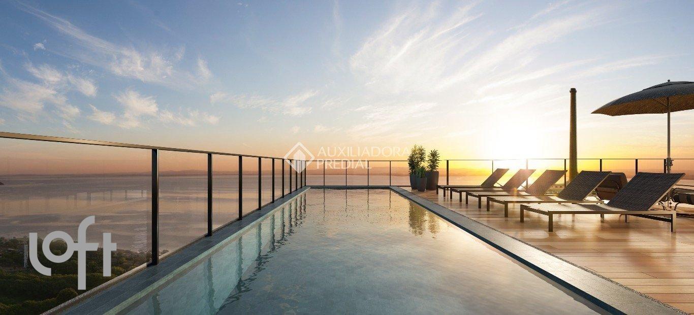 Caiz Downtown Sunset! Apartamento tipo Guaíba Varanda. Ambiente integrado com estar/dormitório/cozinha e banheiro, com sacada. 1 vaga de garagem escriturada. Infraestrutura condominial com fitness, espaço coworking, espaço gourmet, lavanderia, marketplace. Rooftop com lounge de uso comum, gourmet com lavabo, área externa contemplativa, 02 lavabos, e piscina externa descoberta Entrega prevista 02/2027