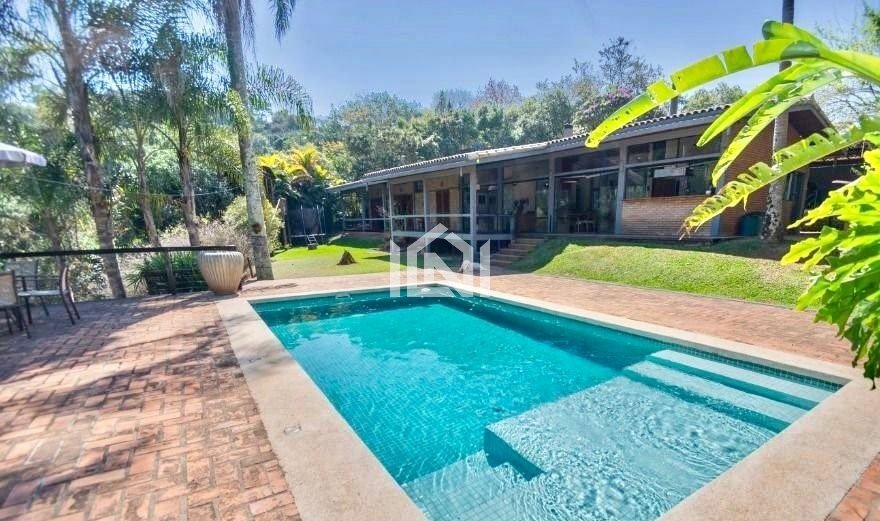 Casa à venda no condomínio Chácara do Peroba, na Fazendinha. Casa térrea estilo contemporâneo em bolsão residencial, com localização privilegiada e rápido acesso para Alphaville e Castelo Branco, bem como ao centro da Granja Viana e Rodovia Raposo Tavares. O imóvel possui: - Living para 5 ambientes envidraçados; - Sala de estar com lareira, acomoda 10 pessoas; - Sala de jantar; - Family room com biblioteca; - Home theater; - Bar; - Lavabo; - Cozinha planejada integrada ao living, com detalhes em azulejo hidráulico no piso, com armários, balcão, bancada de granito em ³U´, coifa e 2 cubas em inox; - 5 suítes, sendo 3 no corpo principal da casa, com portas balcão para varanda e jardim e 2 separadas por lance de escadas; - Suíte Master com lareira e sala de banho com grande banheira com teto de vidro; - 7 banheiros no total (louças e metais de qualidade); - Todas as suítes com armários planejados de ótima qualidade; - Área de serviço aberta e ensolarada; - Lavanderia fechada com porta de correr, tanque, armários e banheiro completo; - Piscina revestida de pastilhas com tratamento por ozônio, hidro, prainha, solarium em deck, preparada para aquecimento solar e iluminação noturna; - Casinha na árvore com madeira de demolição e tanque de areia; - Depósito de ferramentas; - Canil; - Espaço pra horta; - Jardim com paisagismo; - Campinho gramado; - Pomar formado e produzindo: jabuticaba, pitangueira, carambola, amora, abacate, atemóia, goiaba, araçá, uvaia, mexerica, limão siciliano, limão cravo, limão taiti, lichia, manga, mamão, etc; - Pisos em cimento queimado, tacos de madeira, ardósia, tijolos, cerâmica e deck; - Aquecimento: Solar Fotovoltaico. A casa produz a própria energia, podendo até retornar para a rede elétrica. - Abastecimento de água: Poço caipira. - Garagem para 4 vagas, sendo 2 cobertas; -
