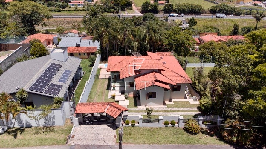 Casa de Campo com lote de 1038m2 (Semi térrea) Lote 1038m2 / Construção 399m2 4 dormitórios sendo 2 Suítes sendo a Master com closet Espaço Home Office Living principal integrando sala de estar, TV e jantar com ar condicionado Cozinha com marcenaria Despensa e lavanderia Salão de jogos aberto Gourmet com churrasqueira completa Piscina com prainha Quintal gramado e com árvores frutíferas plantadas 2 vagas cobertas e 4 descobertas Ar condicionado na suíte Master e na sala de estar Condomínio com Portarias Blindadas, segurança 24 horas, ruas monitoradas, campo de futebol, quadra de Beach Tennis, Quadra Poliesportiva, trilha e Playground. Condomínio R$ 970,00 IPTU R$ 300,00 mês