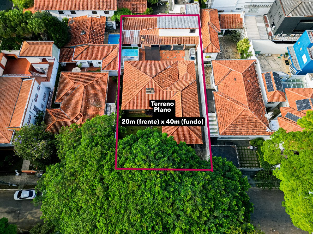 Casa térrea localizada no bairro Indianópolis com 5 quartos, sendo 3 suítes, 4 banheiros no total e 6 vagas de garagem, construída em um terreno plano de 800m². A casa possui piscina, jardim amplo e um sobrado no fundo, grande e independente, área gourmet e lavanderia. Fica próximo a várias opções de lazer e comércio.