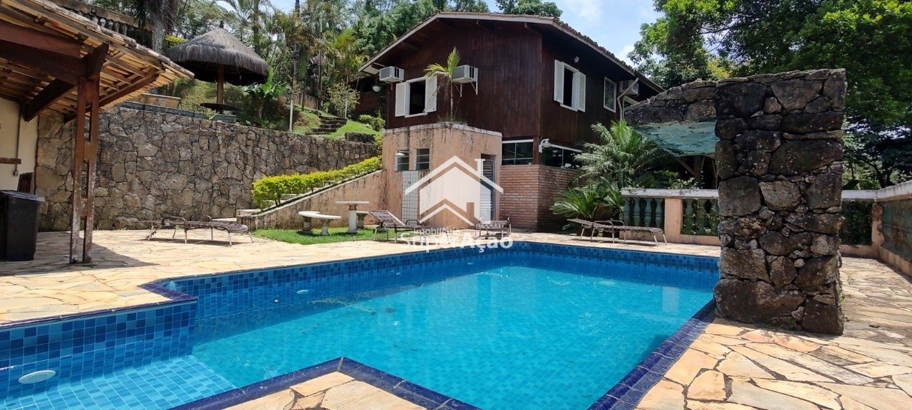 Código do Imóvel: CM1529308-25. Casa pré-fabricada + uma casa de hóspedes de alvenaria com excelente acabamento, localizada no Condomínio Alpes da Serra da Cantareira. Aqui estão os principais pontos: Características Principais 1. Localização: Condomínio Alpes da Serra da Cantareira. 2. Tipo: Casa pré-fabricada. 3. Área de Lazer: Espaço gourmet, quiosque, jardim, churrasqueira, piscina com cascata, sauna e lavanderia. Características Internas 1. Cozinha com gabinete e armários novos. 2. Banheiro: Com box blindex, gabinete e armário. 3. Quartos: 2, com guarda-roupa e vista. 4. Sala: Toda avarandada, com lareira e sala de jantar. 5. Casa de Hóspede: Independente, em alvenaria, com 2 andares. Características da Casa de Hóspede 1. Cozinha: Com bancada em pedra granilite, integrada à sala. 2. Quartos: 2, com varanda, um com closet pequeno. 3. Banheiro: Com box blindex e pia com gabinete.
