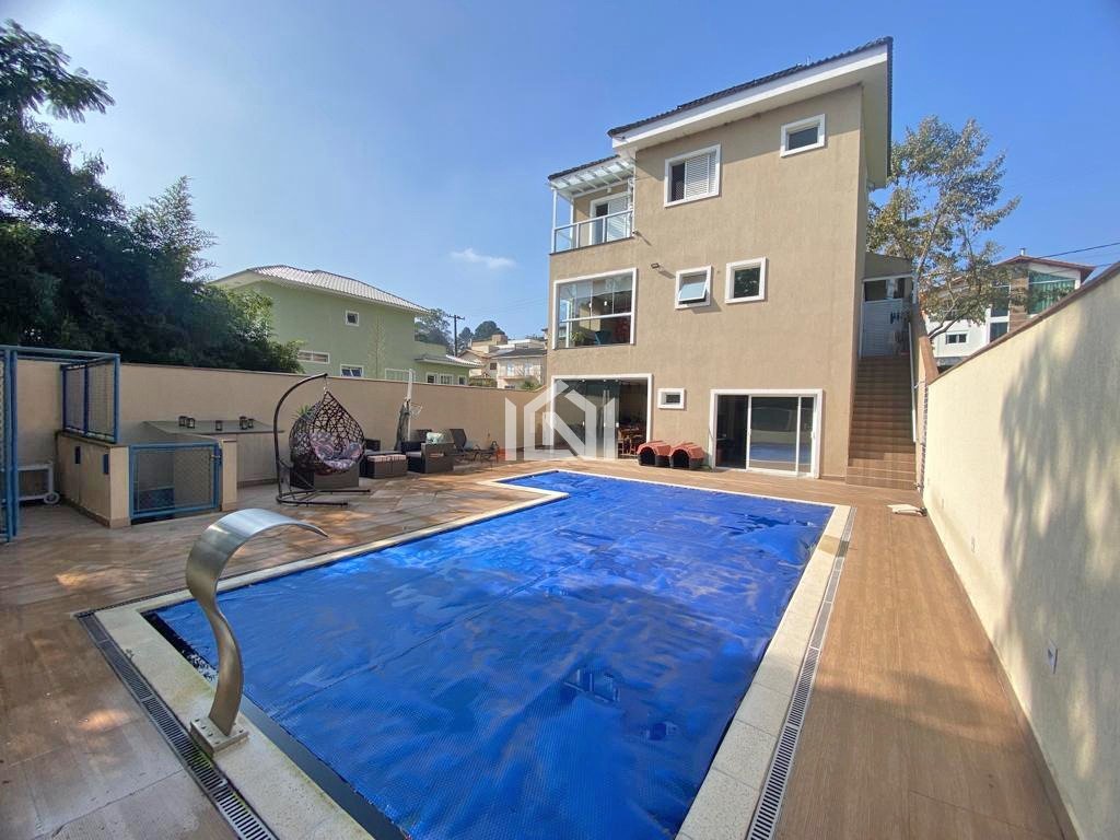 Casa à venda no condomínio Reserva Vale Verde Casa em condomínio fechado na região da Granja Viana, localizado a 2 km da Rodovia Raposo Tavares na altura do km 28, próximo ao Templo Zu Lai, a 10 minutos do Centro de Cotia, terminal rodoviário e de todo comércio local. O imóvel dispõe de: - 3 quartos, sendo 1 suíte; - Sala de estar; - Sala de jantar; - Sala de TV; - Sala exclusiva separada com vista para o verde; - Lavabo; - Cozinha com armários planejados; - Área gourmet com churrasqueira e forno de pizza; - Sala de apoio na churrasqueira que pode ser escritório; - Piscina com aquecimento solar; - Lavanderia; - Porão com sala ampla (pode ser brinquedoteca ou sala de jogos) e banheiro; - Garagem com 4 vagas, sendo 2 descobertas; - Área total de 360 m² sendo 235,38 m² de área construída. Financiamento sujeito à análise. - Agende sua visita!