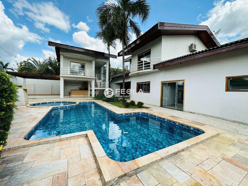 Linda casa no Condomínio Residencial Altos da Represa em Americana/SP com 4 suítes com varanda integrada sendo 1 master com closet e banheira de hidromassagem, hall social, sala de estar ampla, sala de TV com painel, sala de jantar, lavabo, cozinha completa e 6 banheiros. Lavanderia com armários e edícula com suíte, podendo ser usada para hóspede ou até mesmo caseiro. Com muito espaço e conforto, a casa possui acabamento em piso porcelanato, piso em taco de madeira e piso cerâmico nas áreas externas, armários planejados na cozinha, dormitórios e banheiros, pias e soleiras em mármore. Na área externa possui espaço gourmet com churrasqueira e piscina. O condomínio possui sistema de segurança com central própria de vídeo monitoramento 24 horas e poço artesiano de água potável. Estuda permuta por imóvel de menor valor. Agende sua visita, nosso time está à disposição, será um prazer atendê-los!