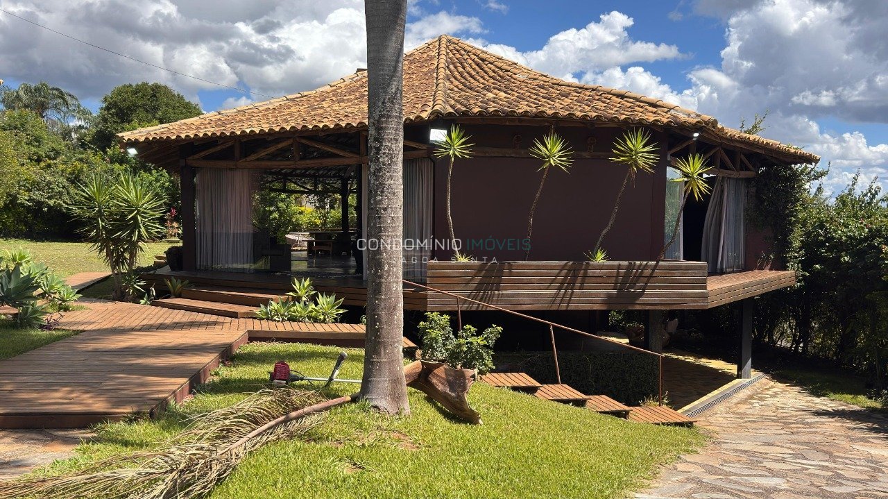 Uma residência única, pensada para quem valoriza arquitetura, natureza e experiências. Implantada em um terreno raro de 2.000 m², essa casa foi projetada em blocos independentes, conectados por decks de madeira e caminhos em pedra natural, criando um cenário acolhedor, elegante e extremamente privativo. O estilo rústico-colonial contemporâneo aparece em cada detalhe: -Telhados em telha cerâmica -Estrutura em madeira aparente -Esquadrias em madeira nobre -Paisagismo maduro e integrado -Ambientes com iluminação e ventilação naturais abundantes Ambientes internos O coração da casa é um pátio interno com pé-direito elevado e iluminação zenital, que conecta os ambientes sociais com leveza e sofisticação. -Sala de estar e jantar amplas, com mobiliário elegante -Ambientes bem distribuídos, com excelente circulação -Casa totalmente mobiliada, pronta para morar Área íntima -4 suítes amplas, sendo 3 com jardim de inverno, garantindo privacidade, luz natural e contato com o verde -Suíte master com banheiro amplo, muito bem distribuído, oferecendo conforto e sofisticação Área gourmet e lazer Um verdadeiro refúgio: -Espaço gourmet espetacular, com estrutura em madeira, fogão a lenha e lareira -Mesa de jantar imponente, perfeita para receber -Área de estar integrada, com vista para o jardim -Piscina inserida em um cenário natural e silencioso -Quintal amplo, totalmente gramado, com paisagismo consolidado Infraestrutura -Garagem coberta para mais de 8 veículos -Lavanderia externa coberta -DCE completo Condomínio -Portaria e segurança 24 horas -Condomínio de alto padrão -Localização estratégica, próximo à entrada e saída da cidade Essa não é uma casa comum. É uma residência com alma, identidade e presença, diferente de tudo que existe dentro do condomínio.
