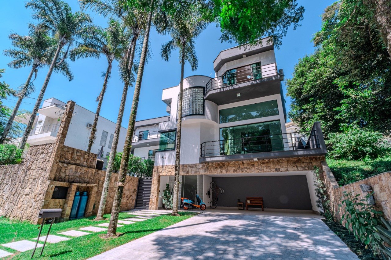 Casa à venda no condomínio, com 765 m² de área construída e projeto desenvolvido sobre dois lotes, um diferencial que proporciona implantação mais generosa, maior privacidade e valorização dos espaços externos. A residência conta com quatro suítes, incluindo uma suíte master, além de ambientes amplos e bem distribuídos. A configuração privilegia conforto e integração, com salas aconchegantes, lareira e excelente circulação entre os ambientes. A cozinha planejada com copa oferece funcionalidade para o dia a dia, aliando praticidade e organização. Na área externa, destacam-se a piscina e a churrasqueira gourmet, criando um ambiente ideal para lazer e recepção. As quatro varandas ampliam a conexão com o exterior, favorecendo iluminação natural e ventilação. Dispõe de seis vagas de garagem. O condomínio oferece lazer completo, segurança e infraestrutura para uma rotina com mais qualidade de vida. Uma propriedade exclusiva para quem busca alto padrão, amplitude e um projeto diferenciado.