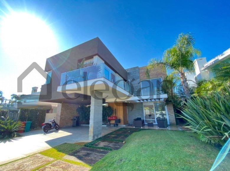 Elegante sobrado mobiliado e decorado, composto por 06 amplas suítes, com aquecimento no piso dos banheiros, sendo 01 térrea e 01 com hidromassagem, living 04 ambientes, espera para lareira a gás, cortinas e persianas automatizadas, lavabo, cozinha americana com churrasqueira, lavanderia, dependência de empregada, água quente e ar split, piscina, pátio com luzes acionamento remoto e cisterna para irrigação automática, garagem para 04 carros, 02 cobertas e 02 descobertas na rampa.