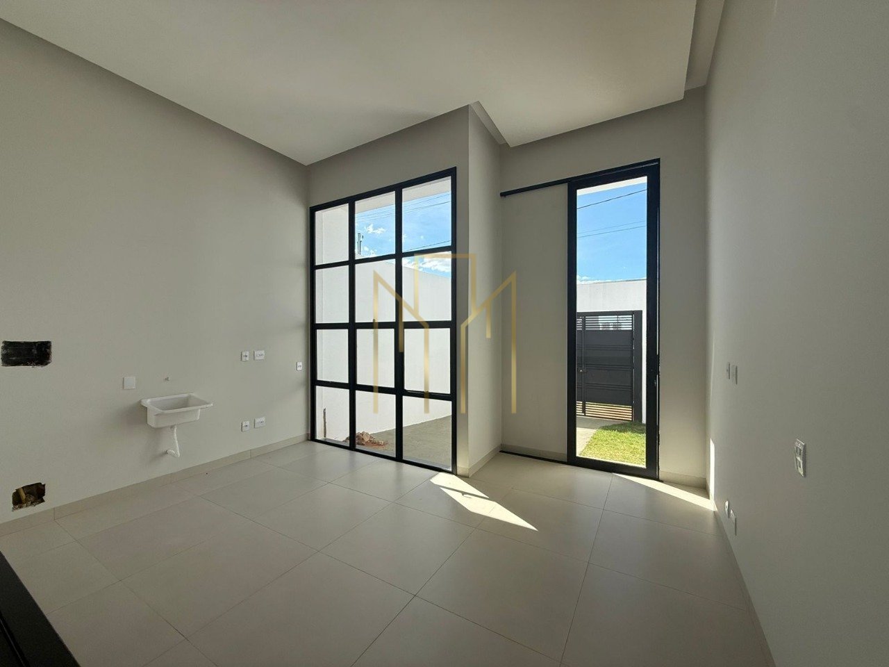 Casa à venda no Bairro Verde em Umuarama. Terreno de 125,00 m² (maior terreno do bairro) e área construída de 71,00 m². Garagem descoberta para 2 veículos. Área de fundos disponível, closet ou espaço. Sala alta com pé direito duplo de 4,50 metros. Porta e janela principal com 4,00 metros de altura. Cozinha americana ampla e moderna. 3 dormitórios, sendo 1 suíte, e 1 banheiro social. Casa toda em porcelanato retificado, com bancadas na cozinha em preto absoluto. Preparação para água quente nos banheiros e cozinha (aguardando instalação do boiler). Ponto para lava-louças na cozinha e lavanderia externa. Portão e esquadrias em alumínio preto de 1ª qualidade. Todas as tomadas de interruptores da marca Tramontina. Acabamento 100% premium. Aceito financiamento. Pronta para morar, 100% concluída. Vale a pena conferir. Início do bairro e próximo aos principais comércios e academia da região.