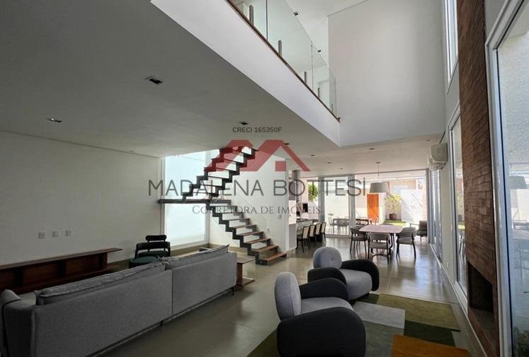 Código do Imóvel: CM1477879-25. Esta casa, recém-reformada, ganhou um lindo visual moderno e, com um layout otimizado e espaços muito bem planejados, oferece um ambiente sofisticado e acolhedor. Isolada pelas entradas laterais, em frente à praça, nunca terá vizinho de frente. Na ampla área de convivência, o espaço gourmet e a varanda integrada ao jardim são apenas algumas das características que tornam este imóvel uma oportunidade imperdível. Possui 3 suítes - a master possui sacada, closet e banheiro. No térreo, em espaço amplo, iluminado e integrado, estão a sala de estar, o cantinho da lareira, a sala de jantar, o lavabo, a copa e a cozinha, que se abre para a área gourmet, a sauna, a área de serviço, o quintal e 1 banheiro externo. Na frente, um jardim e vagas para 4 veículos. Além disso, oferece uma série de comodidades: ar condicionado em todos os ambientes, persianas elétricas e automatizadas - toda a iluminação e equipamentos do imóvel serão automatizados, podendo ser acionados tanto por comando de voz como à distância, pelo celular. Os equipamentos que tiverem sistema wi-fi também poderão ser acionados automaticamente. A porta de entrada eletrônica também poderá ser acionada remotamente. Localizada em um condomínio fechado, com segurança 24 horas, você terá toda a tranquilidade que sua família merece. Aproveite a infraestrutura completa, incluindo playground, quadra poliesportiva, salão de festas e jogos, piscinas e uma área verde deslumbrante. Esta é a sua chance de viver com todo o conforto e a sofisticação que você sempre sonhou. O proprietário aceita terreno como parte do pagamento. Venha conhecer. Você vai se apaixonar por esta linda casa! Agende já sua visita. - Valor anual do IPTU - Ar Condicionado - SPA Hidromassagem - Área de Serviço - Copa - Cozinha - Quintal - Bares e Restaurantes - Escola - Farmácia - Shopping Center - Supermercado