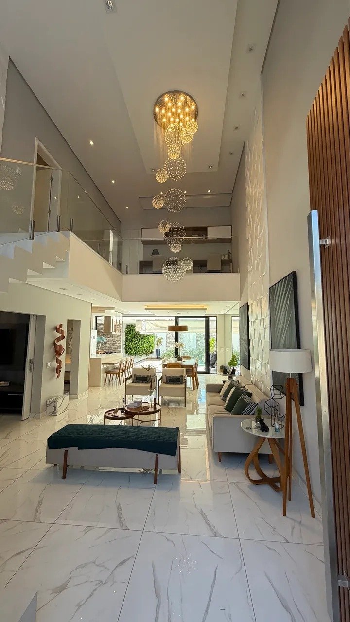 Código do Imóvel: CM1833968-1. Esta residência contemporânea de 269 metros quadrados de área construída em um terreno de 360 metros quadrados reflete o máximo em sofisticação e tecnologia. Finalizada em outubro de 2021, a propriedade destaca-se por seu projeto arquitetônico imponente, com sala de pé direito duplo adornada por um lustre de cristal e escadaria em pedra e vidro. O imóvel é entregue totalmente mobiliado e decorado, contando com móveis de grife assinados, esculturas e quadros que compõem um ambiente de luxo e exclusividade. O conforto acústico é garantido pela sala de home theater com som integrado ao teto, sistema que se estende por outras áreas da casa. A área íntima é composta por três suítes avarandadas, todas equipadas com ar-condicionado, televisores, planejados de alto padrão e portas automatizadas por controle remoto. A suíte master oferece um refúgio privativo com closet e uma banheira de imersão voltada para um jardim de inverno. Na área social, a cozinha com ilha central apresenta bancadas em pedra branca e torre quente equipada com eletrodomésticos modernos. O espaço externo é um verdadeiro complexo de lazer particular, com área gourmet, piscina e jacuzzi aquecidas, além de som e iluminação integrados. A garagem acomoda quatro veículos, sendo duas vagas cobertas.