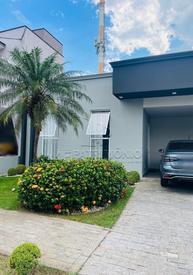 Casa térrea à venda com 3 quartos, sendo 1 suíte master com um lindo e espaçoso closet, sala 2 ambientes e ar condicionado nos 3 quartos e sala, banheiro estilo americano onde o wc dá acesso aos dois dormitórios, lavabo, cozinha com armários, pia em mármore e integrada com a sala de jantar, escritório podendo ser convertido no terceiro dormitório, lavanderia, espaço gourmet com cobertura retrátil, 4 vagas de garagem sendo 2 cobertas e 2 descobertas e 3 banheiros, abastecimento por sistema de energia solar fotovoltaica. Um imóvel lindo e aconchegante que apresenta um conceito moderno com amplo espaço, proporcionando aos moradores um ambiente intimista e agradável. O condomínio oferece aos moradores total segurança e conforto com lago, área verde, playground, espaço gourmet e salão para festas e muito mais. Localizado em um condomínio, possui saída rápida para rodovia.