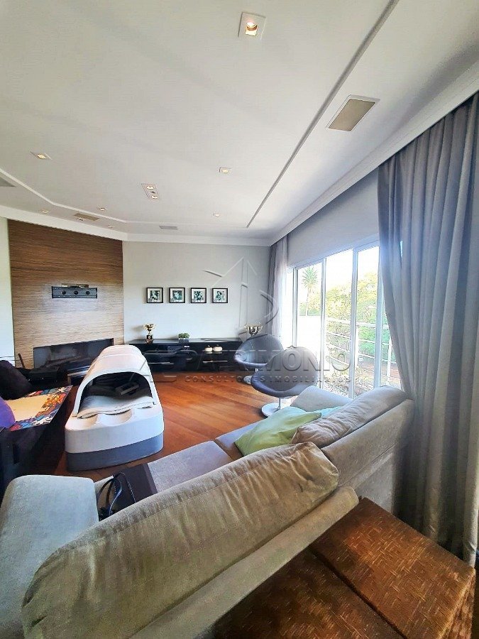 Sobrado de esquina com sala 2 ambientes, cozinha planejada, despensa, banheiro social, 3 suítes com armários, sendo 2 com hidro e 1 com closet. Todas as sacadas individuais, sala de TV com lareira, área gourmet, lavanderia, escritório e 4 garagens sendo 2 cobertas. Acabamento interno: Pavimento inferior em mármore e superior em madeira maciça. Acabamento externo: Garagem para 4 veículos sendo 2 cobertas. Quintal com pergolado e jardim. Descrição do Bairro: Infraestrutura completa em comércios e serviços. Descrição do Entorno: Próximo a mercados, colégios, farmácias, posto de combustível e transporte público.
