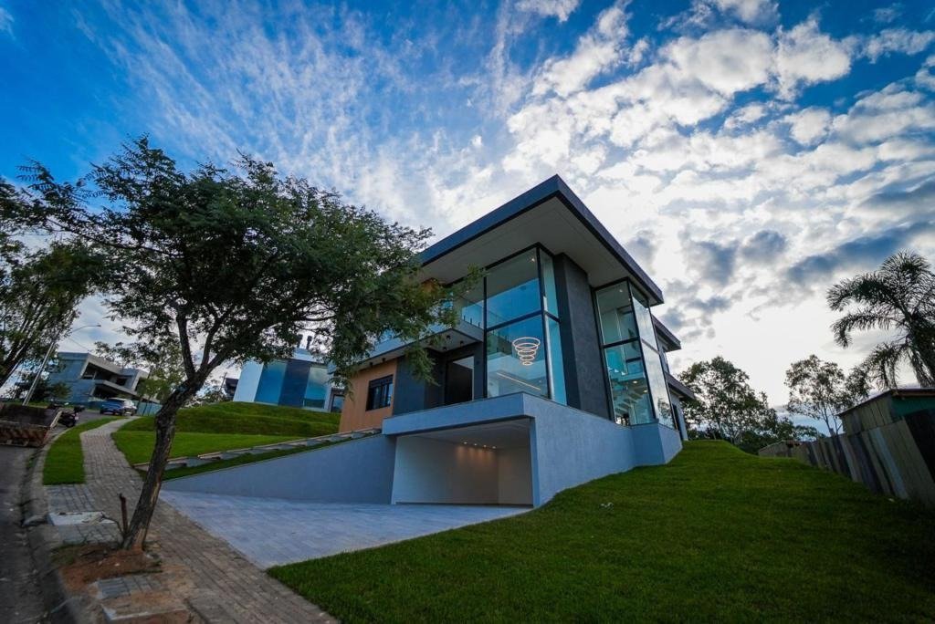 Residência em condomínio de alto padrão com 423,57m² de área privativa em amplo terreno de 1.000m², localizada no bairro Santa Isabel, em Viamão, na divisa com Porto Alegre e com fácil acesso à capital. A casa conta com 4 dormitórios, todos suítes, sendo uma utilizada como escritório, além de 6 banheiros e ambientes amplos, bem distribuídos e com excelente iluminação natural. O living para três ambientes em conceito aberto, com pé-direito alto e grandes aberturas em vidro, valoriza a vista e a integração dos espaços, proporcionando conforto e sofisticação. A área externa dispõe de pátio com piscina e excelente espaço para lazer e convivência, ideal para quem busca privacidade, contato com a natureza e qualidade de vida. O imóvel possui energia solar, alto padrão construtivo e um terreno generoso que reforça a sensação de exclusividade e bem-estar, além de 2 vagas de garagem. Localizada em um condomínio de alto padrão com infraestrutura completa, segurança 24 horas e ampla área verde preservada, com piscina térmica, quadra de tênis em saibro coberta, campo de futebol com grama natural, salão de festas, espaço gourmet, beach tennis, sala de cinema, academia e diversas opções de lazer, oferecendo tranquilidade, ar puro e qualidade de vida, próximo aos principais shoppings, escolas, faculdades, supermercados e conveniências da região, na divisa entre Porto Alegre e Viamão.