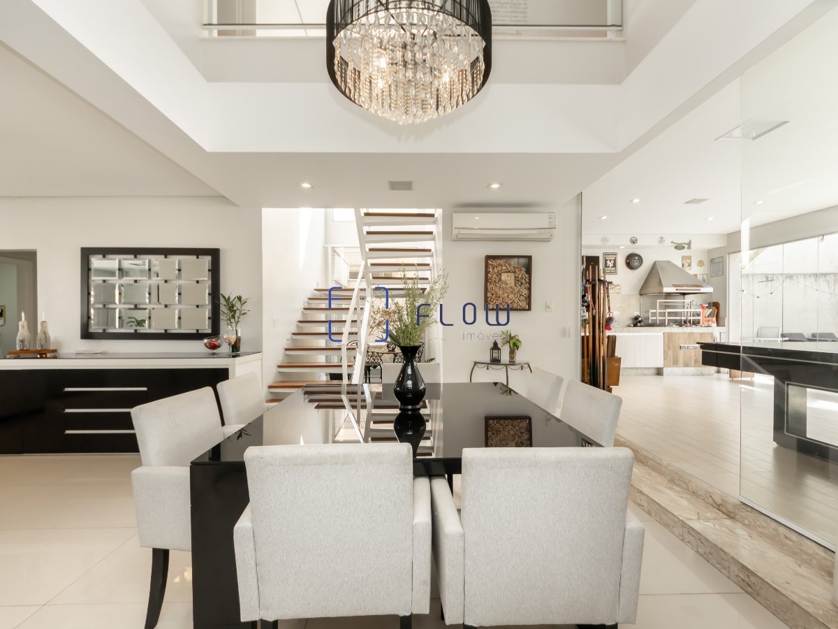 O imóvel possui hall de entrada, sala 02 ambientes, lavabo, suíte principal, suíte 2 e suíte 3, escritório e piscina. A área da piscina possui envidraçamento para possibilidade de abertura e os ambientes ficarem integrados.