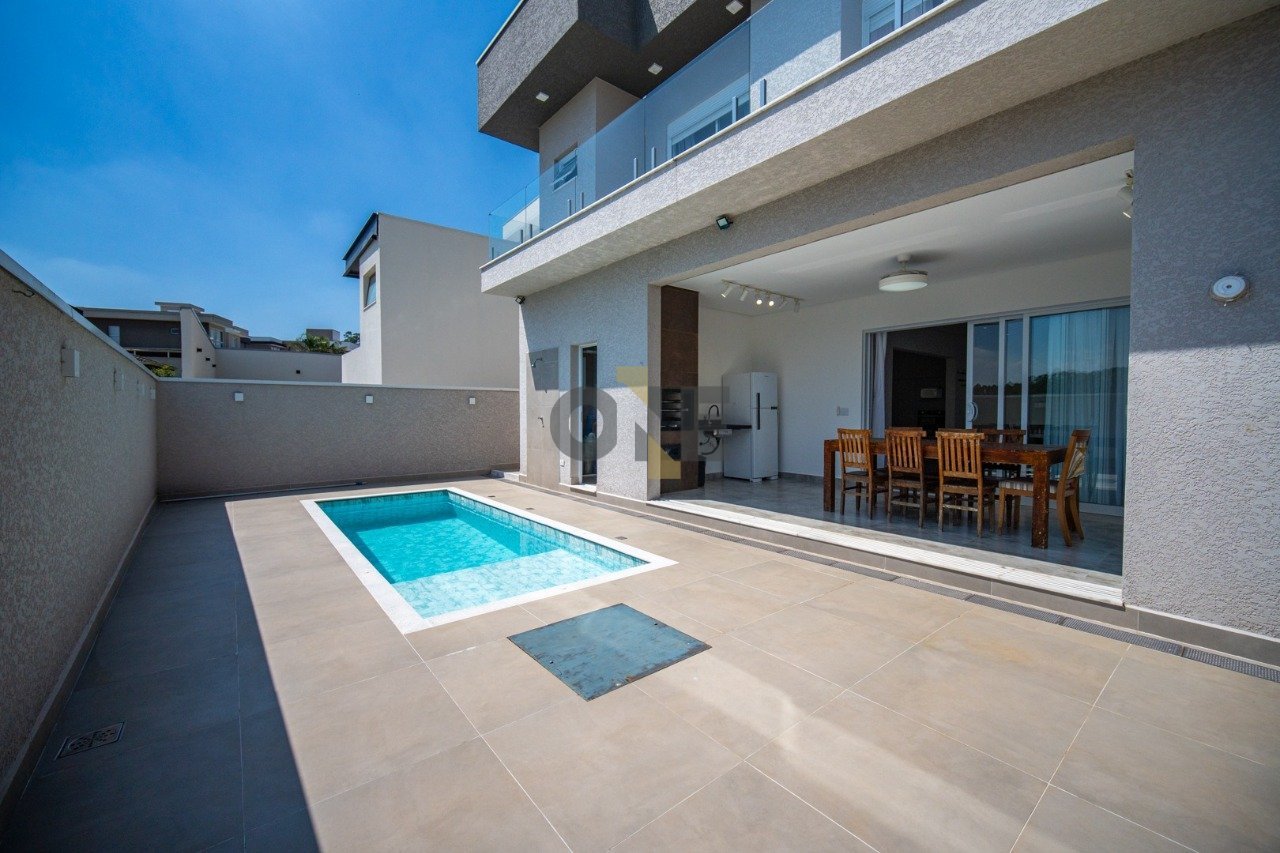 Casa à venda no condomínio Reserva Santa Paula, no Km 32 da Rodovia Raposo Tavares, localizada em um bairro tranquilo e valorizado, ideal para quem busca conforto, privacidade e qualidade de vida. Com 295m² de área construída em um terreno de 387m², o imóvel apresenta um projeto moderno e excelente aproveitamento de área. Logo na entrada, o pé-direito duplo traz amplitude e elegância aos ambientes, com guarda corpo em vidro que valoriza a iluminação natural. O living é integrado e acolhedor, conectado à cozinha que conta com bancadas em quartzo branco e armários planejados, oferecendo praticidade no dia a dia. A casa possui três quartos, todos suítes, com espaço para closet, sendo dois já com armários. Os banheiros têm acabamento moderno, com box até o teto e pontos para água quente, garantindo conforto e funcionalidade. No pavimento superior, há uma sala de TV e um espaço ideal para escritório, ambos com infraestrutura para ar-condicionado. Na área externa, o imóvel conta com espaço gourmet com churrasqueira e banheiro de apoio, integrado à piscina e ao quintal com gramado. Entre os diferenciais, destacam-se o acabamento em porcelanato em todos os ambientes, esquadrias automatizadas, infraestrutura para automação e preparação para energia solar. Localizada em um bairro com ótima infraestrutura e fácil acesso à rodovia, a casa está em posição privilegiada dentro do condomínio, em esquina e sem vizinho de frente, proporcionando mais privacidade. Um imóvel completo para quem deseja viver com conforto, segurança e praticidade.