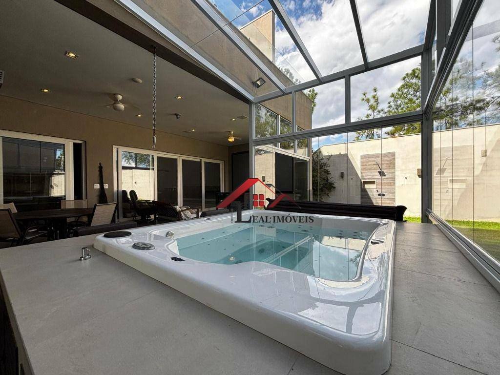Luxo de Casa - Condomínio Palmeiras Imperiais - Salto - Área do Terreno 1.000 m²; - Área Construída: 670 m² - 04 Suítes grandes (sendo a master com banheira); - Elevador; - 01 Closet de 44 m² com 02 ilhas, ar condicionado e 02 ventiladores de teto; - 01 Sala de Controle (Equipamentos de Áudio, câmeras de segurança, etc.); - 01 Sala de Multimídia / TV; - 01 Quarto parte baixo com banheiro; - 01 Oficina com armários embutidos, pia, ar condicionado, ventilador de teto e portão eletrônico; - Garagem para 04 carros + garagem lateral com portão eletrônico + Espaço na rampa para mais 04 carros; - 01 Academia; - 01 Sauna Seca; - 01 Sauna Úmida; - 01 Quarto de Empregada; - 01 Banheiro de Empregada; - 01 Área Gourmet com fechamento de vidro retrátil, com churrasqueira, forno de pizza e fogão a lenha, 02 pias, banheiro completo; - Lavanderia; - SPA para 6 pessoas; - Projetor com tela de 165; - Sala ampla com pé direito duplo; - Cozinha com armários embutidos; - Energia Fotovoltaica (Solar, produz em média 500 kVah por mês); - Caixas d'água com 6.000 lts. de água da rua, filtrada e com pressurizador; - 13.000 lts. de água de reuso (água filtrada e clorada); - Banheiros e torneiras externas de jardim com água de reuso; - Árvores frutíferas: Acerola, Limão Tahiti, Limão Siciliano, Limão Galego, Lichia, Mexerica poncã, Manga, Amora, Jabuticaba, Abacate, Caju, Pitanga, etc.; - Porcelanato da Portobelo, incluindo todos os banheiros com porcelanato em todas as paredes até o teto; - Ar Condicionado em todos os quartos, Academia, Oficina, Sala de TV; - Ventiladores em todos os ambientes, inclusive na área gourmet; - 02 Coifas (Cozinha e área gourmet);