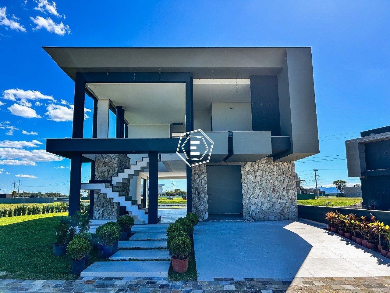 Ótimo sobrado, beira lago, nunca habitado, 4 suítes, sendo 1 térrea, living integrado, área gourmet, espera para split, vaga para 2 carros, lavanderia separada, piscina de concreto.