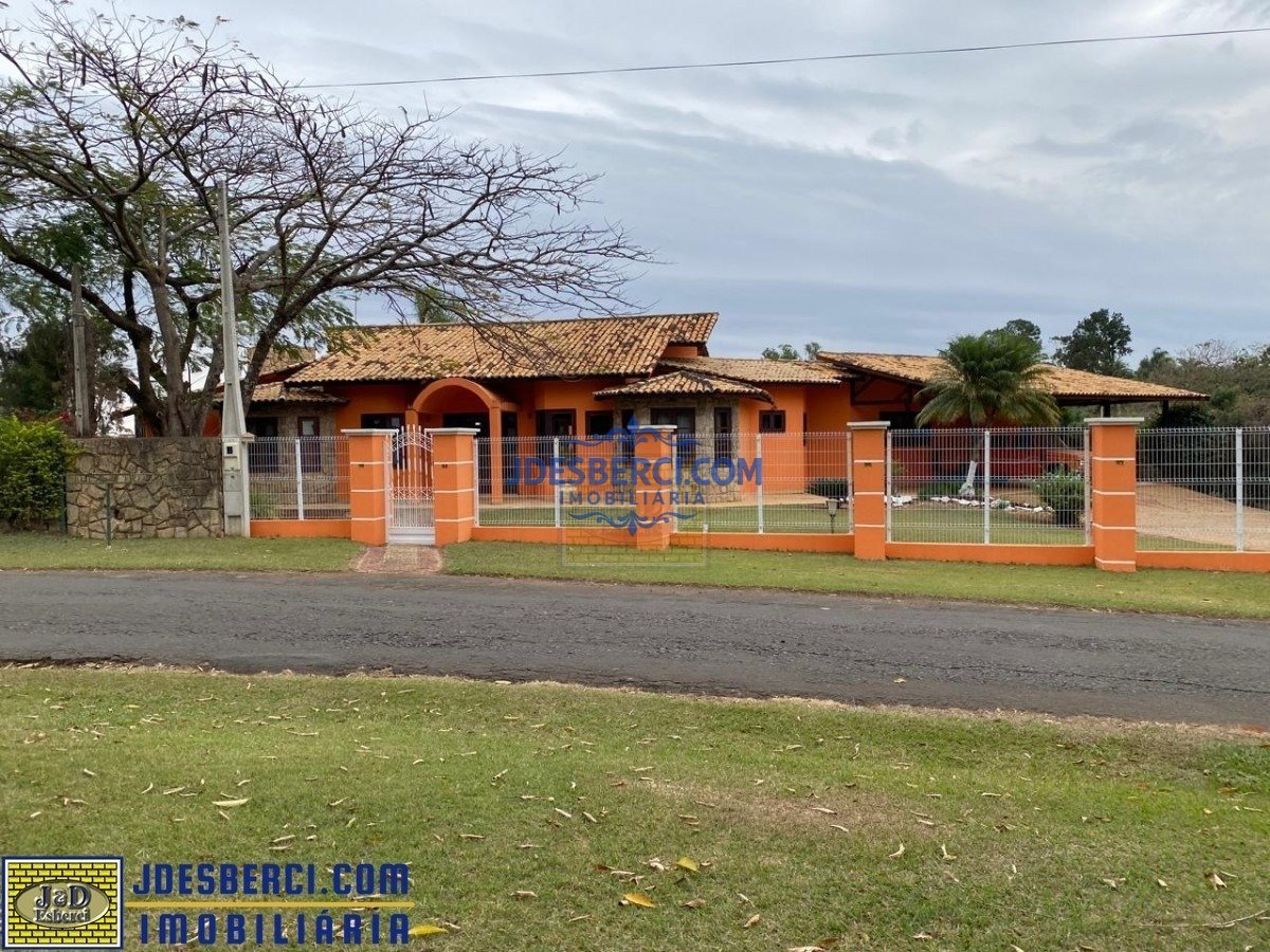 Residência com 6 dormitórios, sendo 2 suítes, 5 banheiros, 3 salas, sala de chá na área da cozinha, lavanderia e quarto de empregada. Garagem para 3 carros coberta, mais 10 vagas descoberta. Salão de festas, com churrasqueira e bar. Campo de futebol. Quadra de vôlei. Pomar com frutíferas.