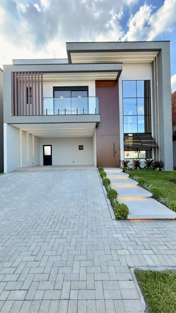 Um imóvel imponente, que remete conforto, segurança e bem estar em cada detalhe. Cômodos amplos, bem arejados, espaço gourmet com churrasqueira, conceito aberto e muita modernidade. CARACTERÍSTICAS - 219.85m² de área privativa - 256.85m² de terreno - 03 Suítes - Sala de estar - Sala de jantar - Cozinha - Banheiro social - Espaço gourmet - Churrasqueira - Quintal - Jardim - 04 Vagas de garagem DIFERENCIAIS - Suíte master com closet - Cuba dupla - Chuveiro duplo - 02 Vagas de garagem cobertas - 02 Vagas de garagem descobertas - Janelas integradas e motorizadas - Conceito aberto - Pergolado no espaço gourmet - Churrasqueira - Preparação para ar condicionado nas salas e suítes - Iluminação pronta e instalada - Aquecimento a gás - Piso porcelanato - Piso laminado - Fino acabamento O CONDOMÍNIO - Piscina aquecida - Piscina externa - Quadra poliesportiva - Sauna - Academia - Portaria 24 horas - 02 Salões de festas Agende sua visita. Os valores podem ser alterados sem qualquer aviso prévio.