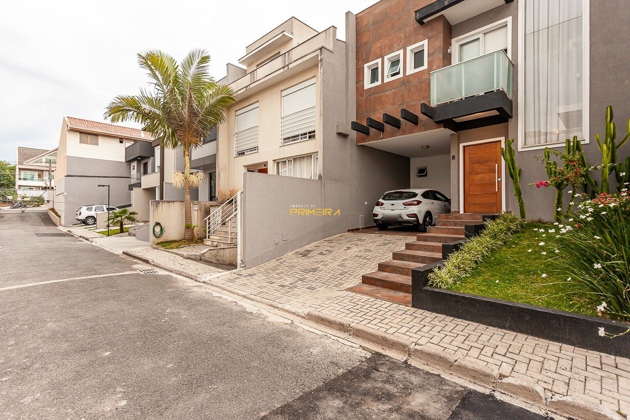 Casa Triplex à venda em Condomínio Fechado no Portão, 4 dormitórios, 2 vagas - Perfeita para Sua Família! Se você procura um lar que combine estilo, funcionalidade e segurança, esta casa triplex no bairro Portão é a escolha perfeita. Localizada em um condomínio fechado próximo à Arena Beach Club e ao Hospital Constantini, oferece tudo o que sua família precisa para viver com qualidade e praticidade. Com 150m² privativos, essa casa semimobiliada destaca-se por seu design moderno e acabamento de alto padrão. São 4 quartos bem distribuídos, incluindo uma suíte com sacada. A sala, projetada para dois ambientes, conecta-se à cozinha planejada em conceito aberto, equipada com móveis fixos que otimizam o espaço e proporcionam um visual contemporâneo. Área gourmet maravilhosa, com uma churrasqueira perfeita para reunir amigos e familiares. O terraço privativo complementa o charme do imóvel, oferecendo um espaço adicional para momentos de lazer ou personalização. Além disso, a face oeste garante que a casa seja ensolarada durante todo o dia, valorizando ainda mais o conforto térmico e a iluminação natural. Com duas vagas de garagem. O condomínio oferece segurança e tranquilidade, com guarita, portão eletrônico e cerca elétrica. Não perca a oportunidade de conhecer essa casa incrível no Portão. Agende sua visita e transforme o sonho da casa própria em realidade! *Consulte a disponibilidade *Valor sujeito a alteração sem aviso prévio
