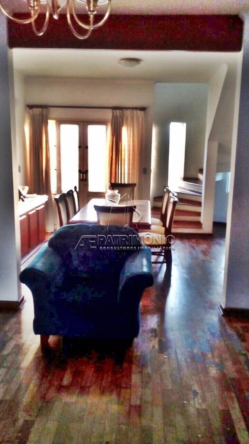 Sobrado com sala de estar, sala de jantar, cozinha planejada, banheiro social, 3 dormitórios sendo 1 suíte, área de serviço, quintal e 4 garagens sendo 2 cobertas. Acabamento interno: Todo em assoalho de madeira, exceto cozinha e banheiro social com piso cerâmico. Portas em madeira. Janelas em ferro. Cozinha e banheiros com revestimento até o teto. Banheiros com box em vidro. Acabamento externo: Todo em piso cerâmico. Área de serviço com revestimento até o teto. Quintal gramado. Fachada com tijolos à vista.