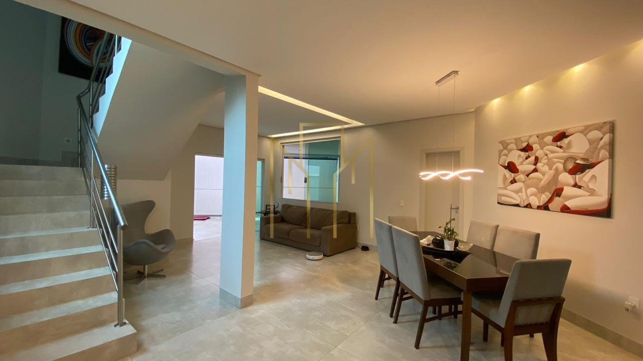 Venha se encantar com esse maravilhoso sobrado! Com um projeto e acabamento impecáveis, ele conta com 3 suítes amplas, sendo 1 master com closet e banheira. Todas as suítes possuem armários e ar condicionado, garantindo o máximo de conforto e praticidade. Além disso, o sobrado possui uma sala de TV no piso superior, uma sala grande em três ambientes com lavabo, escritório, cozinha completa com armários, área de lazer com churrasqueira, ducha e spa. A área de serviço é espaçosa e funcional, e a garagem é grande, com depósito e aquecedor solar. O acabamento é de altíssima qualidade, todo em porcelanato retificado, garantindo um visual moderno e sofisticado. E não para por aí! O condomínio oferece uma infraestrutura completa, com piscinas, campo de futebol, academia, lago, playground, quadras de tênis, quadra poliesportiva, quadras de peteca, fazendinha, cinema, salão de festas, sala de jogos, academia de pilates, sauna e portaria 24 horas. Venha viver com conforto, segurança e lazer em um só lugar. Agende uma visita e se encante com esse sobrado dos sonhos!