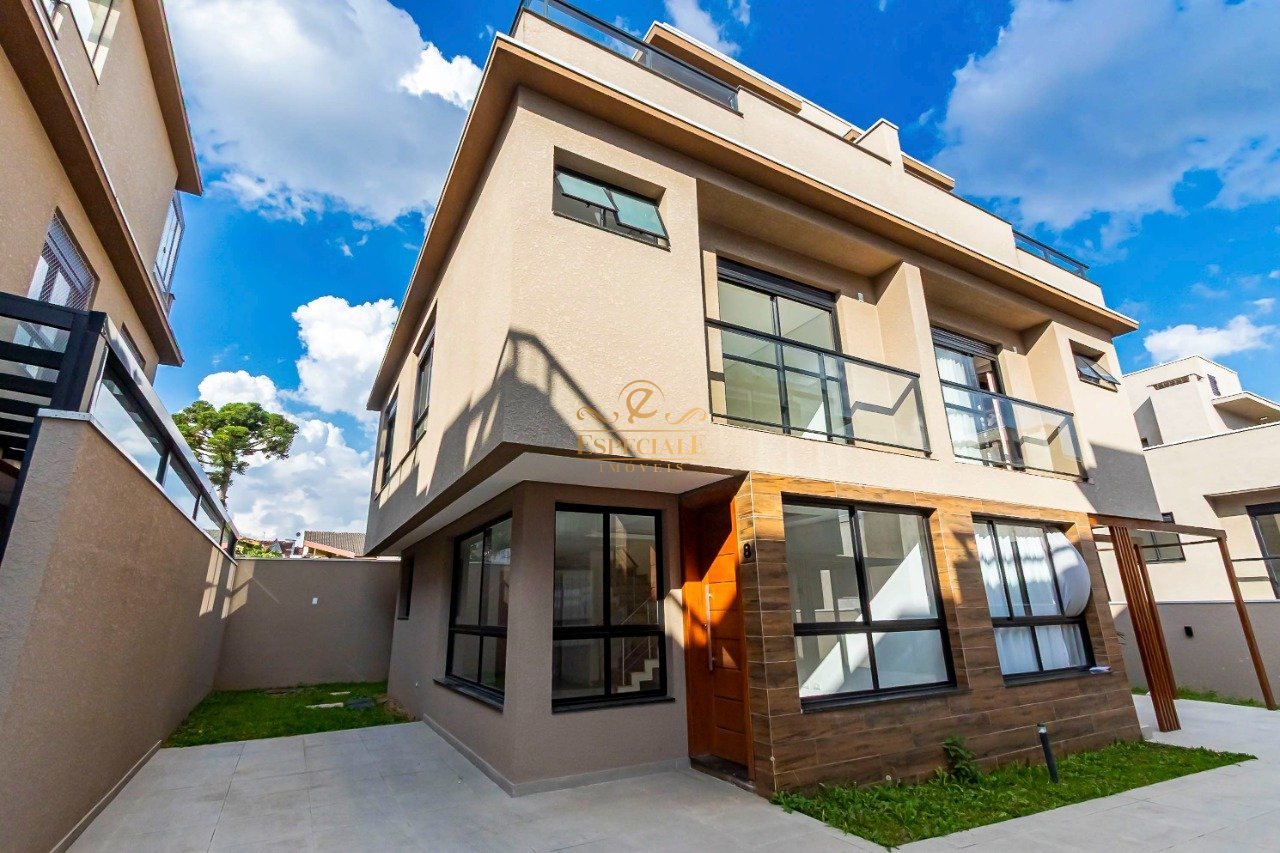 Sobrado novo à venda, com excelente padrão de construção, ambientes bem distribuídos e ideal para quem busca conforto, modernidade e praticidade no dia a dia. No pavimento térreo, o imóvel conta com sala de TV aconchegante, além de sala de jantar integrada à cozinha, criando um ambiente moderno, funcional e perfeito para a convivência. Neste piso também estão o lavabo e a área de serviço, proporcionando mais praticidade para a rotina. No pavimento superior, encontram-se 3 quartos bem iluminados, sendo 1 suíte, além de banheiro social, garantindo conforto e privacidade para toda a família. O ático é um grande diferencial do imóvel, oferecendo churrasqueira e uma agradável área aberta, ideal para momentos de lazer, confraternizações e descanso. O sobrado possui entrada privativa para cada unidade e está localizado em ponto elevado do bairro, proporcionando vista ampla e maior valorização do imóvel. Diferenciais do imóvel: - Churrasqueira entregue em todas as unidades - Pátio com infraestrutura para instalação de jacuzzi - Infraestrutura para ar-condicionado em todos os quartos e salas - Isolamento acústico entre as unidades (paredes duplas) - Revestimento em porcelanato nas áreas sociais - Arquitetura moderna, cômodos amplos e excelente padrão de acabamento - Medidores individuais de água e gás - Vagas com fácil manobra de veículos Um imóvel pensado para oferecer qualidade de vida, conforto e funcionalidade, perfeito para quem busca um sobrado novo, moderno e pronto para morar. Imóvel localizado no bairro Tingui, uma região residencial tranquila e valorizada de Curitiba, reconhecida pela excelente infraestrutura e fácil acesso a diversos pontos da cidade. A localização oferece praticidade no dia a dia, com ampla variedade de comércios e serviços nas proximidades. A poucos minutos é possível encontrar supermercados, panificadoras, farmácias, escolas e diversas opções de transporte público, além de acesso facilitado às principais vias da região. Outro grande destaque é a proximidade com áreas de lazer e natureza, como o Parque Bacacheri e o Parque Tingui, excelentes opções para caminhadas, atividades ao ar livre e momentos de lazer com a família. Uma localização que une tranquilidade residencial, conveniência e qualidade de vida. Infraestrutura do condomínio: - Portões automáticos para veículos nas unidades internas - Portão de acesso para pedestres com interfone (condomínio sem