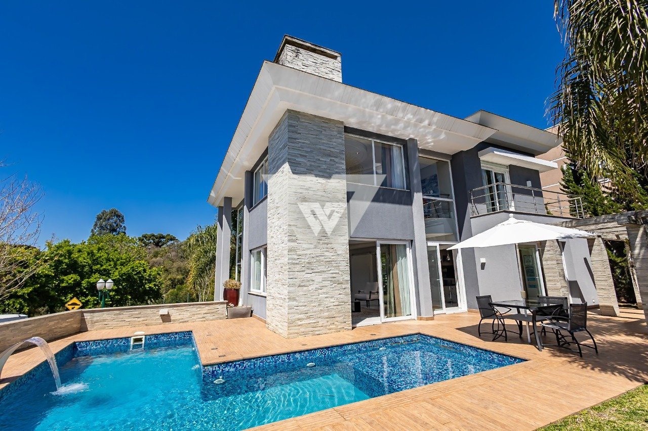 Casa de Alto Padrão no Condomínio em Curitiba Viva com exclusividade em um dos endereços mais valorizados da cidade, em um condomínio que une lazer, segurança e natureza. 400 m² privativos 03 suítes (master com closet, hidromassagem e varanda com vista para o lago) 04 vagas de garagem Living integrado com pé-direito duplo e lareira Espaço gourmet completo Piscina com cascata e solário privativo Jardim planejado Diferenciais que elevam o padrão: Piso aquecido Esquadrias termoacústicas Móveis sob medida Sistema de automação residencial Placas solares Infraestrutura para carro elétrico Condomínio clube: piscina, quadras esportivas, academia, salão de festas, pista de skate, lago, bosque privativo e portaria 24h. Um endereço único, feito para quem busca conforto, sofisticação e qualidade de vida.