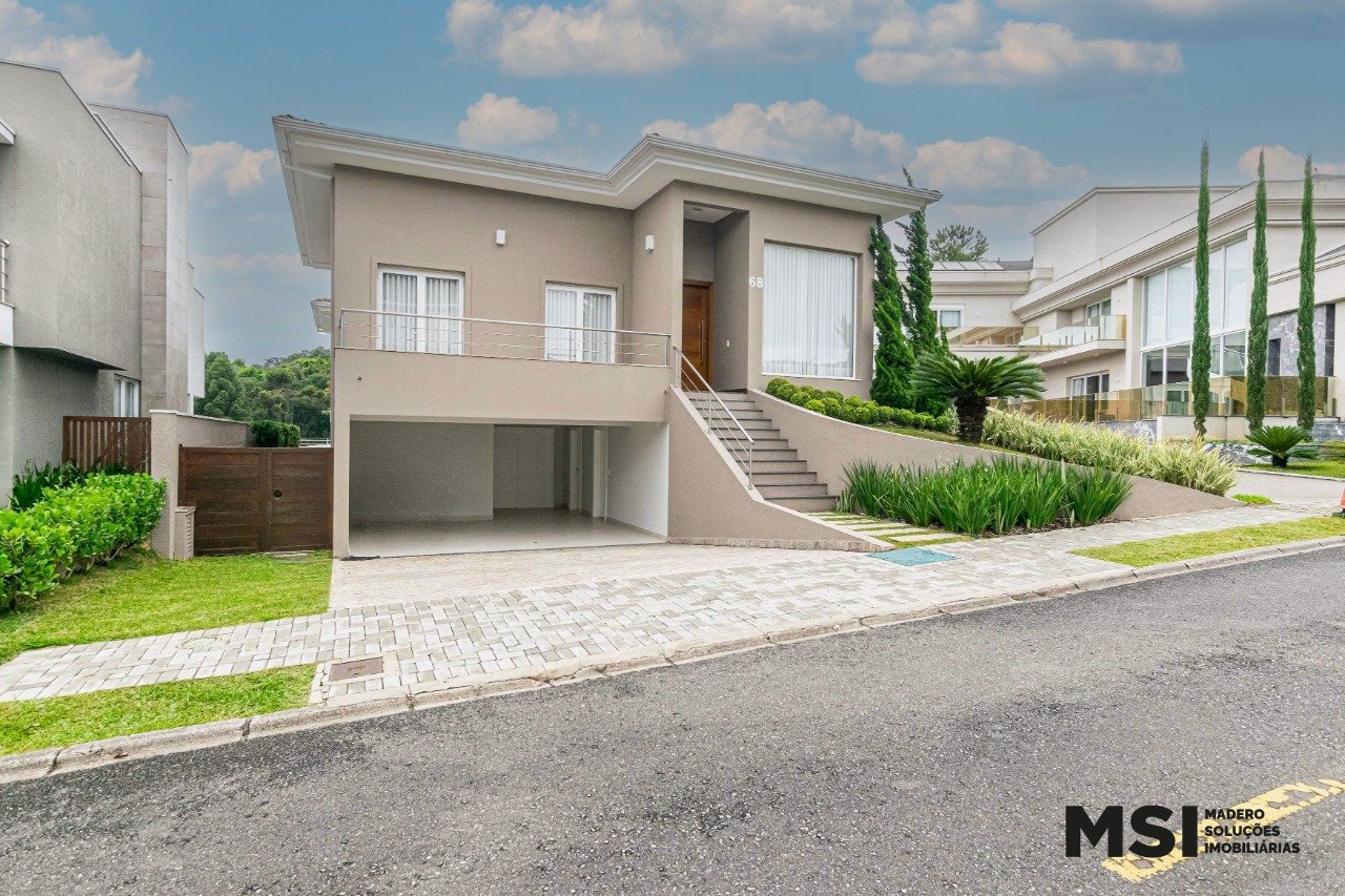 Casa de Alto Padrão à Venda no Condomínio Paysage Curityba - Exclusividade, Natureza e Sofisticação Totalmente revitalizada, esta residência foi cuidadosamente planejada para receber novas histórias com elegância, conforto e autenticidade. Um projeto que integra arquitetura contemporânea, natureza e bem-estar em perfeita harmonia, ideal para quem valoriza qualidade de vida, privacidade e alto padrão construtivo. Localizada em um dos condomínios clube mais desejados da região, a casa oferece ambientes amplos, integrados e com abundante iluminação natural, cercados por muito verde e segurança 24 horas. Com 513,54 m² de área privativa, o imóvel impressiona pela fluidez dos espaços e pelo nível superior de acabamentos. Destaques do Imóvel 05 suítes 07 banheiros 03 salas amplas e integradas Escritório privativo Adega Cozinha planejada com armários, bancada e pia em corian Lavanderia com armários Dependência completa de funcionários Varanda com vista para área de lazer e bosque Área gourmet integrada ao jardim com sistema de som Quintal amplo com área verde e espaço reservado para piscina 04 vagas de garagem Diferenciais que Elevam o Padrão A área gourmet é o verdadeiro coração da casa, totalmente integrada ao jardim, criando um ambiente ideal para receber com conforto e sofisticação. A sala principal, com pé-direito alto e paredes envidraçadas, conecta os ambientes internos ao verde externo, proporcionando leveza, amplitude e ventilação natural. As escadas em mármore Travertino com corrimão em aço escovado reforçam a elegância do projeto. Os banheiros foram totalmente renovados, com acabamentos contemporâneos e materiais nobres. A suíte master é um refúgio exclusivo, com closet, banheiro com duas cubas, banheira de hidromassagem e revestimentos em pedras naturais. Todos os dormitórios possuem armários, ar-condicionado novo e cortinas sob medida. Ambientes climatizados nas salas e suítes garantem conforto em todas as estações. A residência conta ainda com dois aquecedores, lavabos em ambos os pavimentos e um projeto que une design, funcionalidade e conexão com a natureza. Infraestrutura Completa de Condomínio Clube O condomínio oferece: Portaria 24h revitalizada Salão