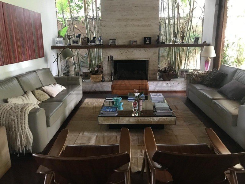 Localizada ao lado do comércio completo e charmoso do bairro. Casa confortável integrada a um grande jardim, com lago e carpas. Vidros proporcionam a entrada de muita luz e trazem o verde para dentro do imóvel. CASA 855m² terreno 550m² área construída. Sala de TV. Sala de estar com lareira. Sala com bar. Sala de jantar. Adega climatizada para 1.200 garrafas. Terraço gourmet. 3 suítes. 2 dormitórios e 1 banheiro. Escritório. Varanda. Cozinha com copa. Jardim com árvores frutíferas. Piscina aquecida. Sauna seca. Academia com esteira. 4 garagens.