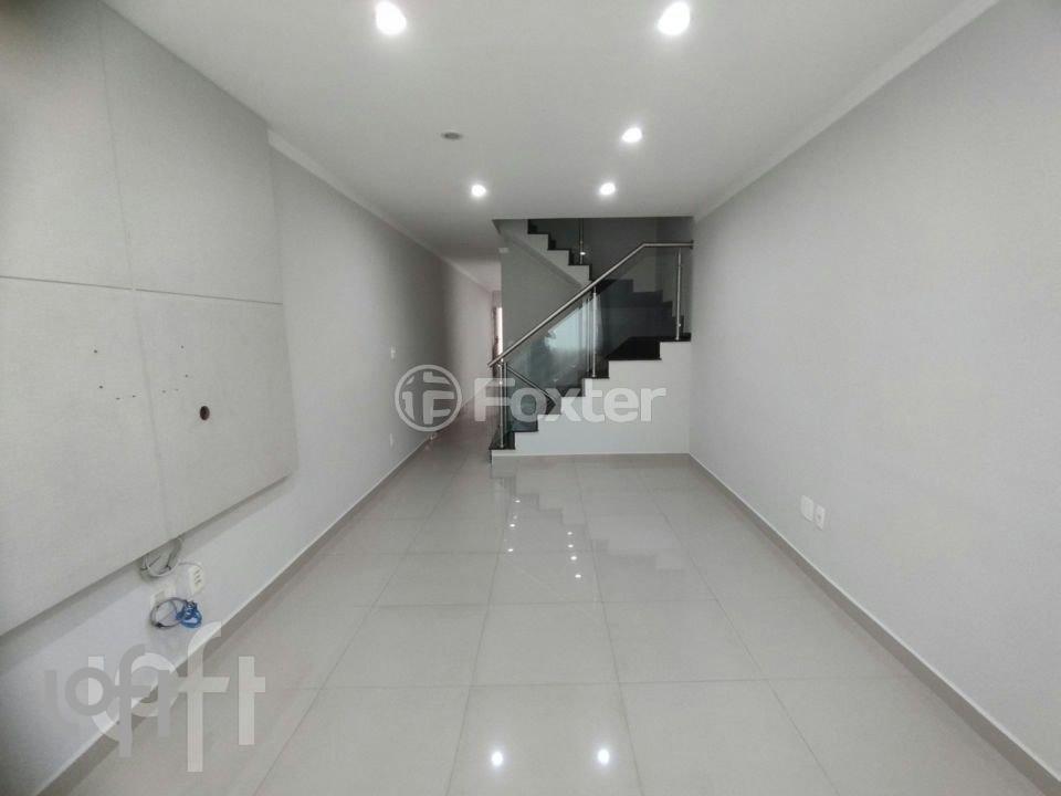 Sobrado com excelente acabamento. 3 quartos, sendo 1 suíte, 2 banheiros e 1 lavabo. Sala e cozinha amplas, depósito, quintal com churrasqueira, bancada e pia em mármore. Armários planejados em MDF. Cozinha com muitos armários, pia e balcão em granito, forno elétrico, cooktop e depurador. Ambientes com porcelanato e laminado. Lustres em cristal, escadas com guarda corpo em vidro temperado e estrutura em aço inox, banheiros com box elegance, jardim de inverno e infraestrutura ar condicionado.