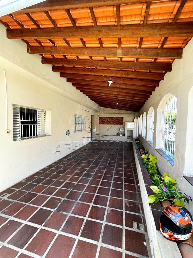 Casa térrea com sala de estar, copa cozinha, despensa, 1 banheiro social, 2 dormitórios sendo 1 suíte, área de serviço, 1 dormitório externo, quintal e 3 vagas cobertas. Acabamento Interno: Dormitórios e sala de estar com piso de taco, janelas de alumínio e portas de madeira. Áreas molhadas em piso cerâmico e revestimento até o teto. Área externa em piso cerâmico, janelas de alumínio e porta de madeira. Acabamento Externo: Garagem para 10 veículos, 3 vagas cobertas. Descrição do Bairro: Infraestrutura completa em comércios e serviços. Descrição do Entorno: Próximo a mercados, colégios, farmácias, posto de combustível e transporte público.