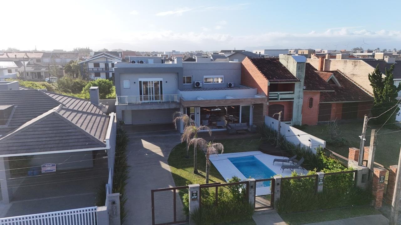 - 4 Suítes (Sendo 01 Térrea) - Mobiliado - Lavabo - Sala de estar com lareira - Sala de jantar - Cozinha americana com churrasqueira - Área de serviço - Garagem coberta para 02 carros - Piscina - Projeto moderno e de alto padrão - Esquadrias em PVC - Água quente - Aberturas automatizadas - Pátio amplo, murado e cercado