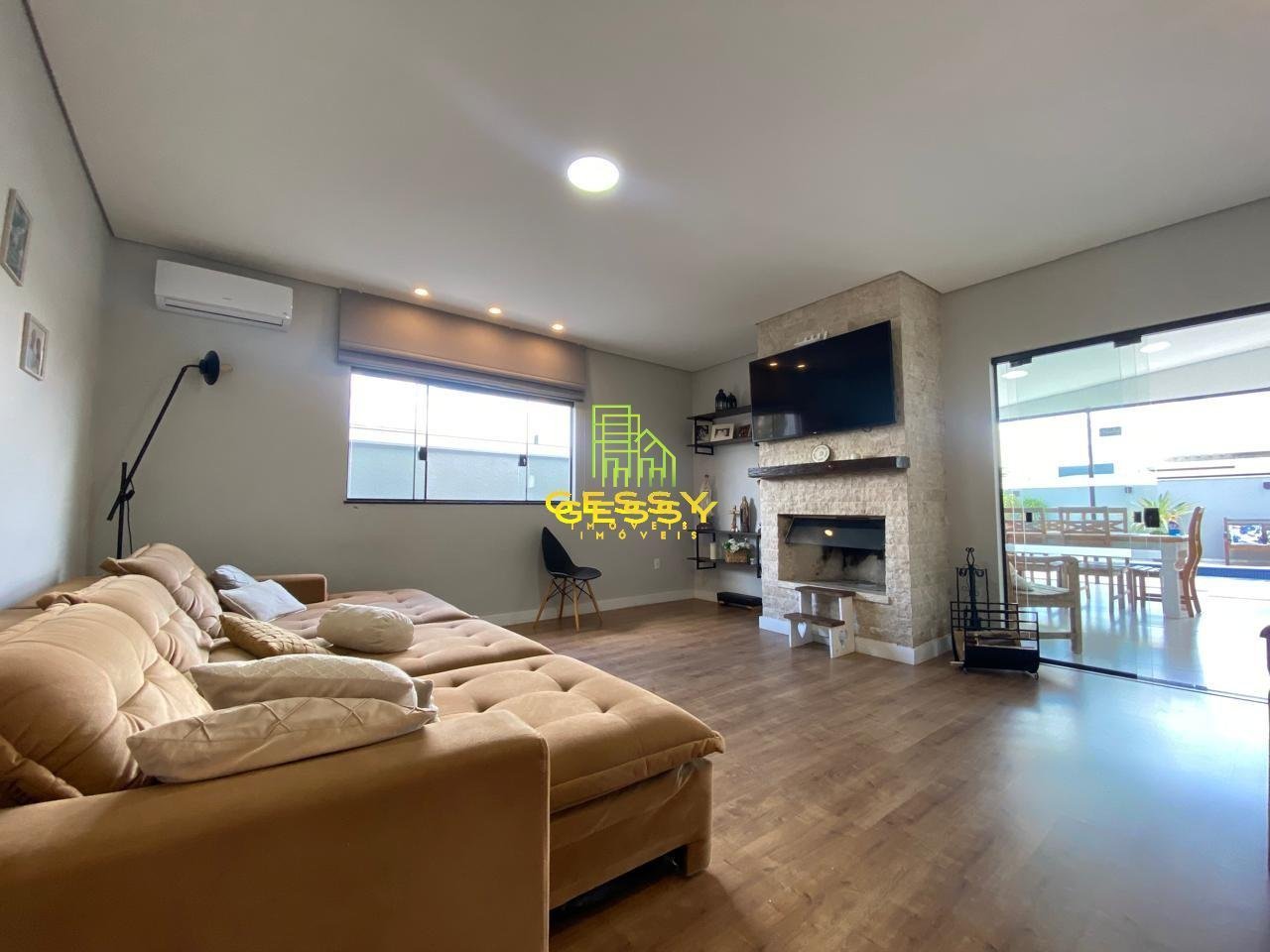 Casa com 3 dormitórios sendo 3 suítes, garagem para 2 carros, sala de estar com lareira, cozinha com móveis planejados, área gourmet, lavanderia, piscina com jacuzzi e torneiras com aquecimento.