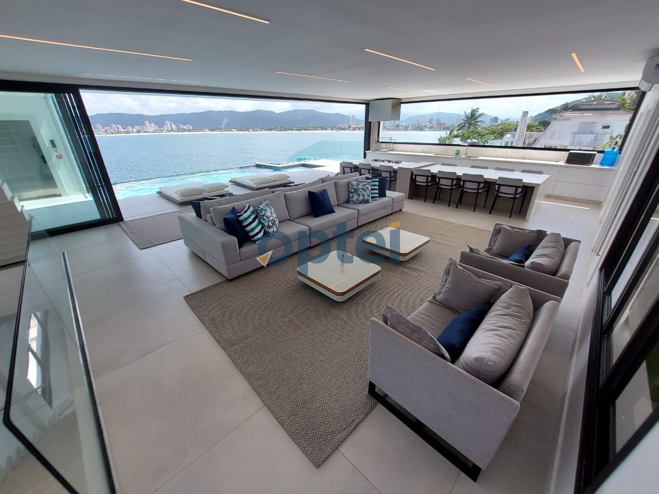Código do Imóvel: CM1543066-11. Residência de alto padrão de 1000 m² no condomínio Residencial Peninsula na cidade de Guarujá, SP, com vista total para o mar e pier para Jet Ski. São 06 dormitórios com 06 suítes, todas de frente para o mar, sala ampla com 03 ambientes integrada com a varanda, amplo terraço, copa, cozinha planejada, sala de home theater, lavabo, despensa, dependência de empregada e elevador. Acabamento em toda a casa em porcelanato. Churrasqueira e piscina com borda infinita de frente para o mar. Essa propriedade pode ajudar a realizar o seu sonho!