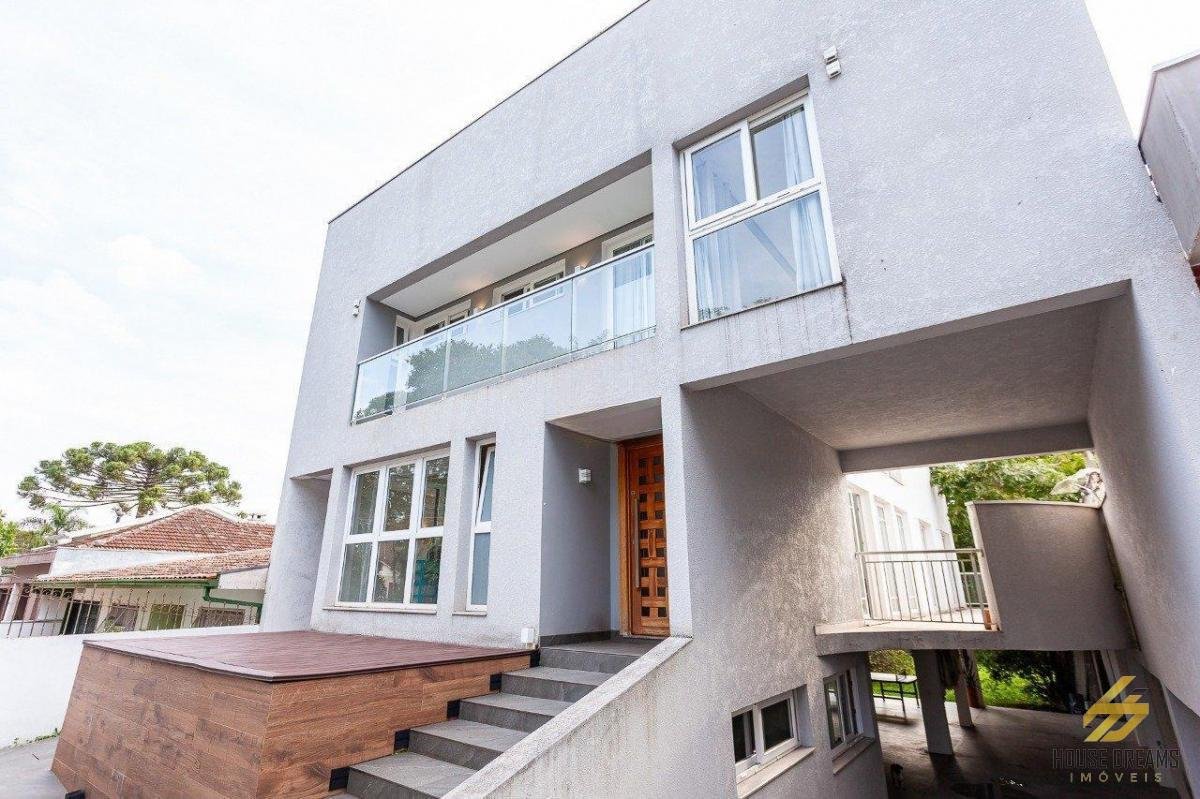 Encantadora residência contemporânea, situada em uma tranquila rua no Alto da XV, oferece uma área útil de 390 m² em um amplo terreno de 450 m². Esta propriedade combina conforto, sofisticação e integração com a natureza, proporcionando um ambiente harmonioso e acolhedor. Ao entrar, você é recebido por um elegante hall que conduz a um escritório e um lavabo. A sala principal, conectada à cozinha gourmet e à churrasqueira a carvão, cria um espaço generoso e acolhedor, destacado por um mezanino com grandes janelas que inundam o ambiente com luz natural. No térreo, duas suítes espaçosas e uma ampla sacada envolvem toda a casa. O piso superior abriga uma suíte máster confortável, completa com um amplo closet e um luxuoso banheiro para o casal. Também há um espaço social para convívio e uma extensa área descoberta com vistas deslumbrantes. A residência inclui uma garagem para até cinco veículos cobertos, área de serviço com banheiro e quarto de serviço, além de um amplo quintal com árvores frutíferas, oferecendo um refúgio sereno. Equipada com aquecimento a gás e pisos de porcelanato em todos os ambientes, esta casa é marcada por detalhes requintados, como portas de madeira maciça. Esta propriedade versátil pode ser utilizada tanto como residência quanto para fins comerciais, adaptando-se com elegância às necessidades do proprietário. Valores sujeitos a alteração sem aviso prévio.