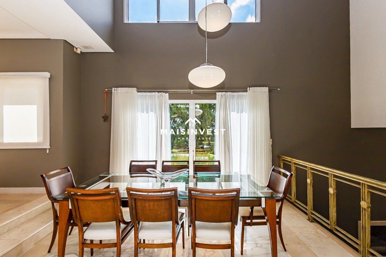 Casa localizada no Residencial Andorinhas, com arquitetura contemporânea de inspiração clássica, a residência dispõe de ambientes generosos, iluminados naturalmente. Na área social, os destaques incluem sala íntima com lareira, lavabo sutilmente decorado, sala de jantar integrada ao home theater e ao espaço gourmet, equipado com churrasqueira e passa-prato para a cozinha. Ainda dispõem de um banheiro social de apoio, cozinha ampla com copa e ilha central, lavanderia com despensa e dependência completa de serviço. A área íntima contempla duas suítes, sendo uma master com sacada, amplo closet e banheiro, além de duas demi-suítes também com sacada. Dos quatro quartos, três possuem closet, oferecendo ainda mais praticidade e conforto. Dentre as características que tornam o imóvel único, destacam-se o ático com armários planejados, ar-condicionado em todos os quartos e no ático, piso em madeira maciça nas áreas íntimas, além de acabamentos em mármore nas salas e escadaria, que unem requinte e segurança. A garagem comporta quatro vagas cobertas. Esta residência representa o equilíbrio perfeito entre requinte, funcionalidade e privacidade.