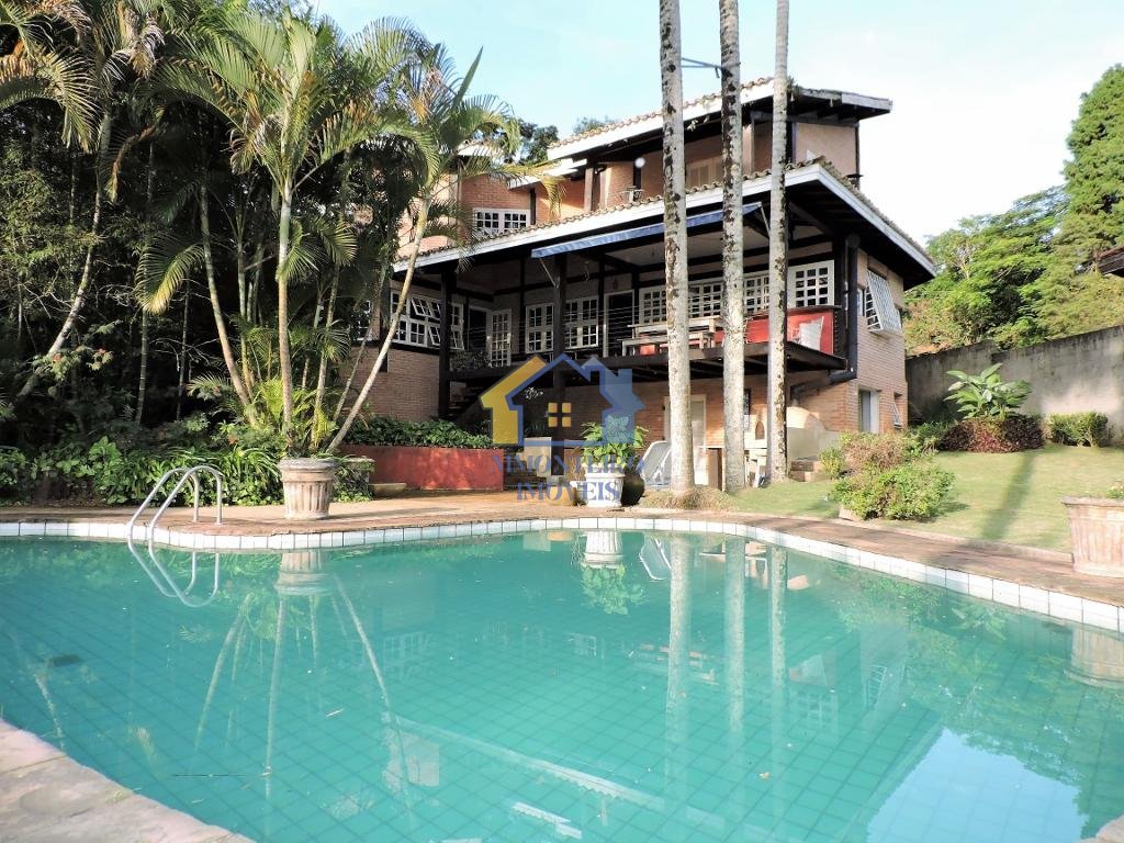 Excelente casa em estilo rústico, envidraçada e integrada. Com privacidade, pé direito alto e totalmente voltada para área verde preservada. Imóvel charmoso projetado e construído pelos arquitetos proprietários. Conforto térmico pelos tijolos maciços, sem blocos. Pisos em ardósia preta, cerâmica e tábuas largas. Estrutura em madeira com porta social. Hall de entrada social, dando acesso ao living e área íntima por escada de ferro. Living envidraçado para 4 ambientes, com lavabo. Salas integradas: jantar, estar, lareira e escritório. Voltadas para varanda, também integrada à cozinha. Área gourmet com forno de pizza, bancada e pia, integrada à área de lazer em grande quintal com jardim. Piscina de alvenaria em formato orgânico, iluminada com deck e solarium. Sauna úmida para 8 pessoas. 2 suítes com ar condicionado na parte superior, sendo a máster com closet e varanda. Mais um mezanino multiuso que pode ser transformado na 3 suíte e outro espaço no térreo que pode ser reversível na 4 suíte se necessário. Copa cozinha americana com armários, despensa e ótimo balcão integrando à sala de jantar. Lavanderia, com área de serviço fechada e aberta. Depósitos. Porão com ótima circulação de ar, garantindo a casa seca, sem umidade. Garagem para 4 vagas, sendo 2 cobertas. Aquecimento: Gás de passagem. Abastecimento de água: poço ativo de boa qualidade. Armazenamento: 3.000 litros. Acesso pelo km 22,8 da Raposo Tavares. Pequeno condomínio fechado formado, situado no bolsão residencial. Portaria com segurança e controle de acesso 24 horas. Casas de alto padrão. Terrenos de 600 a 1.000 m². Com natureza exuberante e divisa para área de preservação.