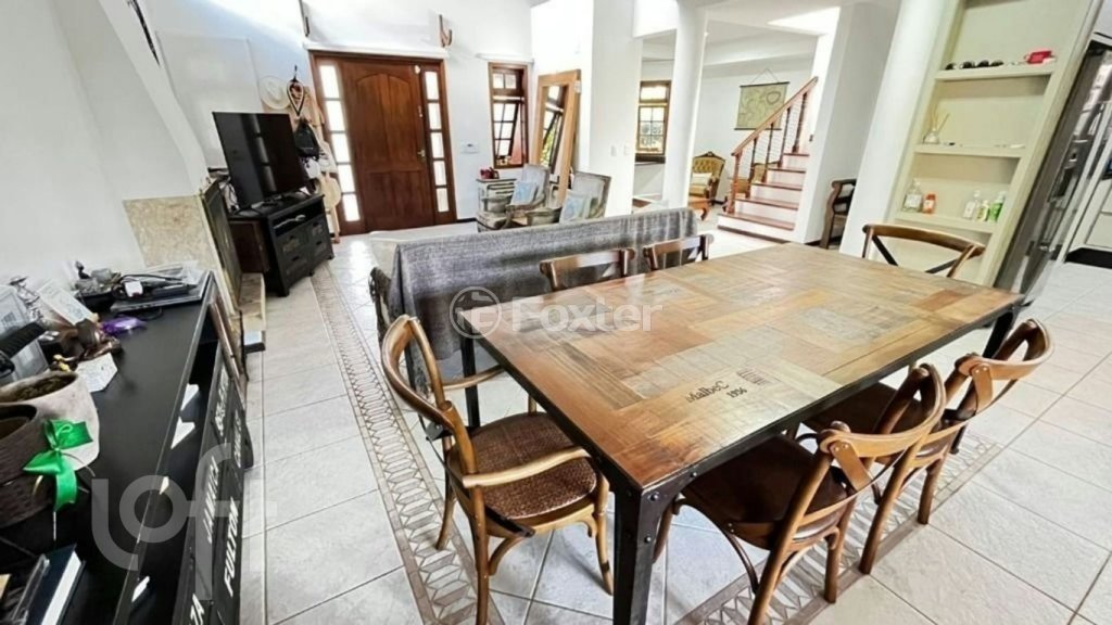 Casa em Jurerê Internacional com 2 pavimentos e 230 m² de área construída em um terreno de 450 m². Primeiro pavimento com amplo living, onde sala de estar e jantar se integram em um ambiente aconchegante, banhado por luz natural e com o charme de uma lareira, além do potencial de integração à área externa. A casa dispõe ainda de uma cozinha funcional, área de serviço espaçosa e banheiro completo. A área externa é um verdadeiro refúgio de lazer: conta com espaço gourmet com churrasqueira e um quintal arborizado, proporcionando momentos de relaxamento e bem-estar em meio à natureza. No andar superior, encontram-se 3 quartos, sendo uma suíte master com sacada privativa, closet e banheiro com hidromassagem, além de 2 quartos com sacadas e um banheiro social.
