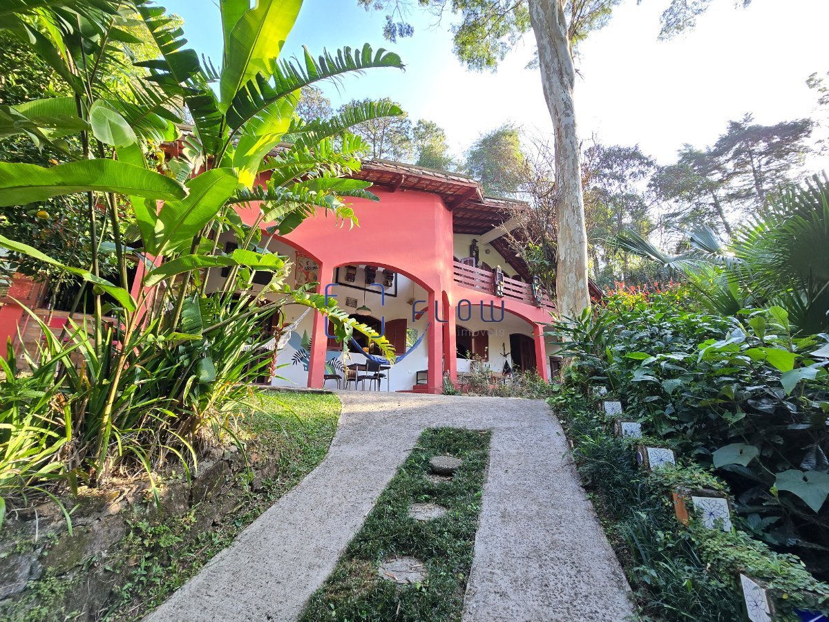 Sobrado à venda na Serra da Cantareira no Condomínio Parque Petrópolis. Parte superior - 3 dormitórios sendo 2 deles com ampla varanda e vista linda, sótão, mezanino e banheiro. Parte inferior - 3 salas espaçosas (estar, jantar, íntima) integradas com cozinha aberta com fogão a lenha, 1 banheiro, 1 dormitório com closet. Área de serviço. Dormitório/banheiro de apoio para usufruir da maneira que preferir. Área gourmet com churrasqueira ideal para receber amigos e familiares. Toda avarandada com vista linda para o verde. Um escritório independente da casa com lareira, ar condicionado e deck privativo. Mistura do rústico com o moderno, repleto de detalhes, janelas amplas de vidro com persianas de enrolar, tendo aproveitamento total de luz natural. Design com cores que harmonizam com o ambiente externo, criando uma atmosfera tranquila e inspiradora. Vaga para 6 carros ou mais. Totalmente mobiliado, decoração rústica com o moderno, ambientes repletos de detalhes e histórias. Sua construção em materiais naturais como pedra, madeira e janelas amplas confere um charme único criando um ambiente acolhedor e autêntico. Ideal para amantes das artes plásticas, música, escritores, pessoas que gostam de estar em contato com a natureza, que querem uma segunda moradia para momentos de descanso e paz. Ideal também para investidores, atualmente já rentabiliza em plataformas de aluguel. A infraestrutura do imóvel é de primeira qualidade, contando com rede elétrica e hidráulica recém reformados, excelente iluminação externa no jardim e diversos pontos de água para irrigação. O imóvel possui um poço que abastece a casa, garantindo autonomia e sustentabilidade. Inúmeras árvores frutíferas espalhadas por todo o quintal e lago privativo. Tudo isso em um ambiente tranquilo e seguro, onde você poderá realmente sentir a energia positiva e revigorante deste lugar especial. Condomínio Parque Petrópolis em Mairiporã com suas características únicas, combina natureza, segurança, um estilo de vida tranquilo e é conhecida pela sua beleza natural, proporcionando um ambiente relaxante para viver. Mairiporã é um verdadeiro refúgio para aqueles que buscam uma vida em harmonia com a natureza, sem abrir mão das comodidades da cidade grande. Conhecida por suas deslumbrantes paisagens serranas, essa charmosa