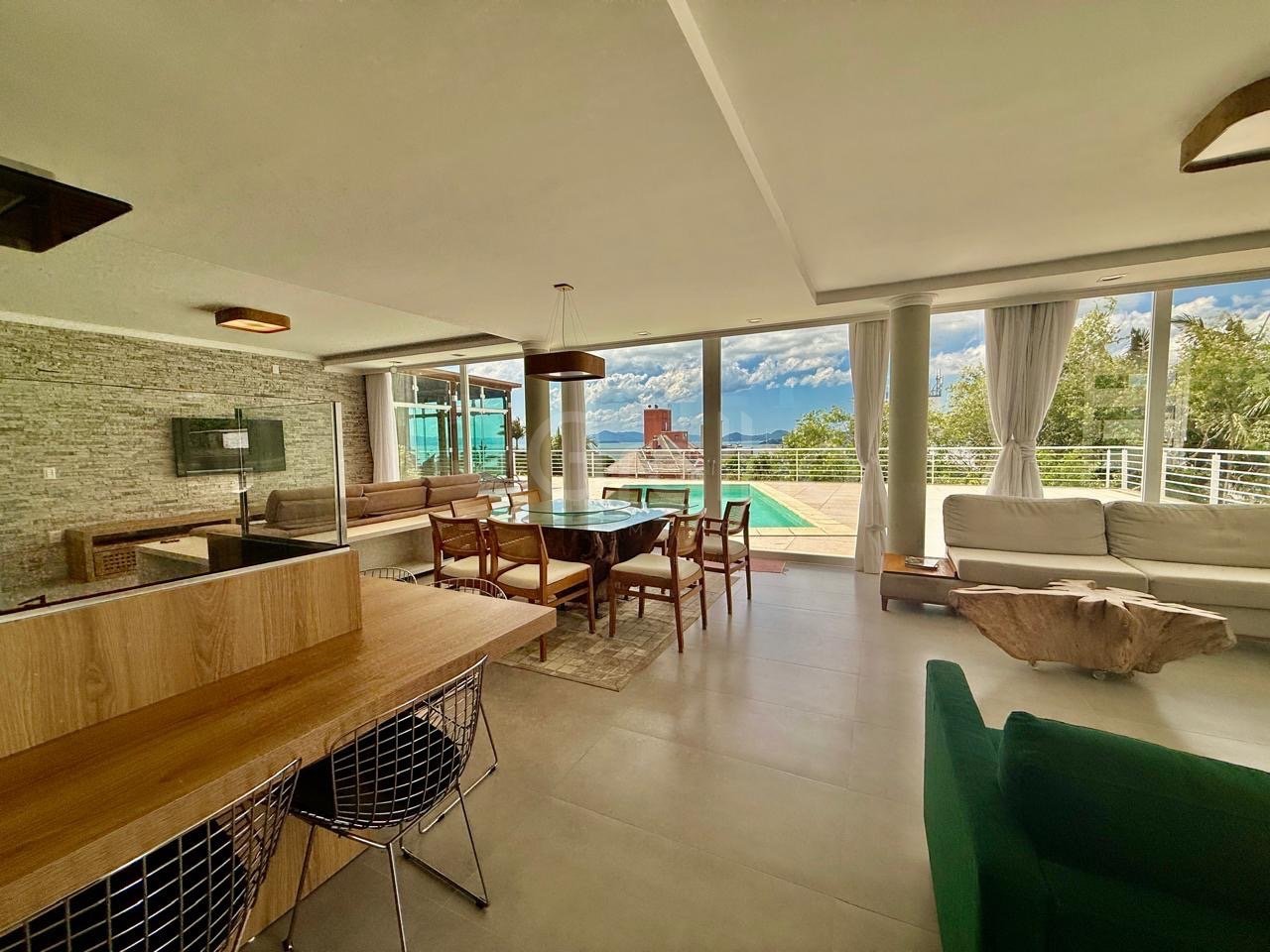 Casa residencial de alto padrão com vista mar, perfeita para quem busca conforto, sofisticação e espaços amplos para viver e receber. O imóvel conta com 3 suítes, sendo uma suíte master com closet e hidromassagem, proporcionando privacidade e um verdadeiro refúgio dentro de casa. Possui lavabo, sala de estar e jantar integradas, escritório, estar íntimo, além de sacada e terraço que valorizam ainda mais a iluminação e ventilação natural. A cozinha americana é funcional e integrada aos ambientes sociais, conectando-se à área externa com churrasqueira, piscina e pátio, ideal para momentos de lazer em família ou para receber convidados. Dispõe ainda de área de serviço, dependência com banheiro auxiliar e excelente distribuição dos espaços. A casa oferece armários planejados, ar-condicionado, infraestrutura para split, persianas, aquecimento solar, acabamento em piso porcelanato e garagem para até 8 carros. Um imóvel completo, com vista privilegiada para o mar, que une elegância, conforto e praticidade em cada detalhe.