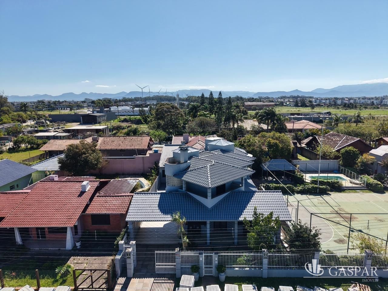 Mansão em Atlântida, com 5 suítes, sendo 3 suítes com sacada e 1 suíte máster com hidromassagem, mobiliada e decorada, cozinha americana com forno de pizza, lareira, sala de jogos com mesa de bilhar, dependência de empregada com lavanderia, 06 vagas de garagem. São 3 terrenos, mansão com piscina, espaço gourmet, quadra de futsal, paisagismo conectando os terrenos junto à casa.