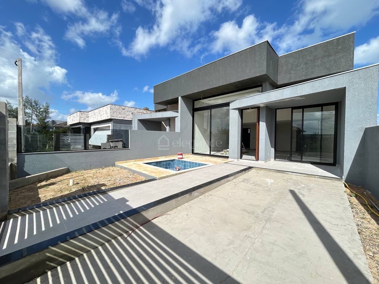 Casa com piscina. Frente Oeste. 3 dormitório(s). 1 suíte(s). 2 vaga(s). 140m². Nova, nunca habitada. Próximo do mar.